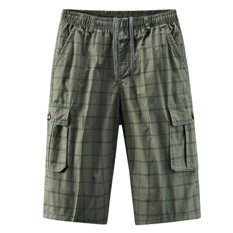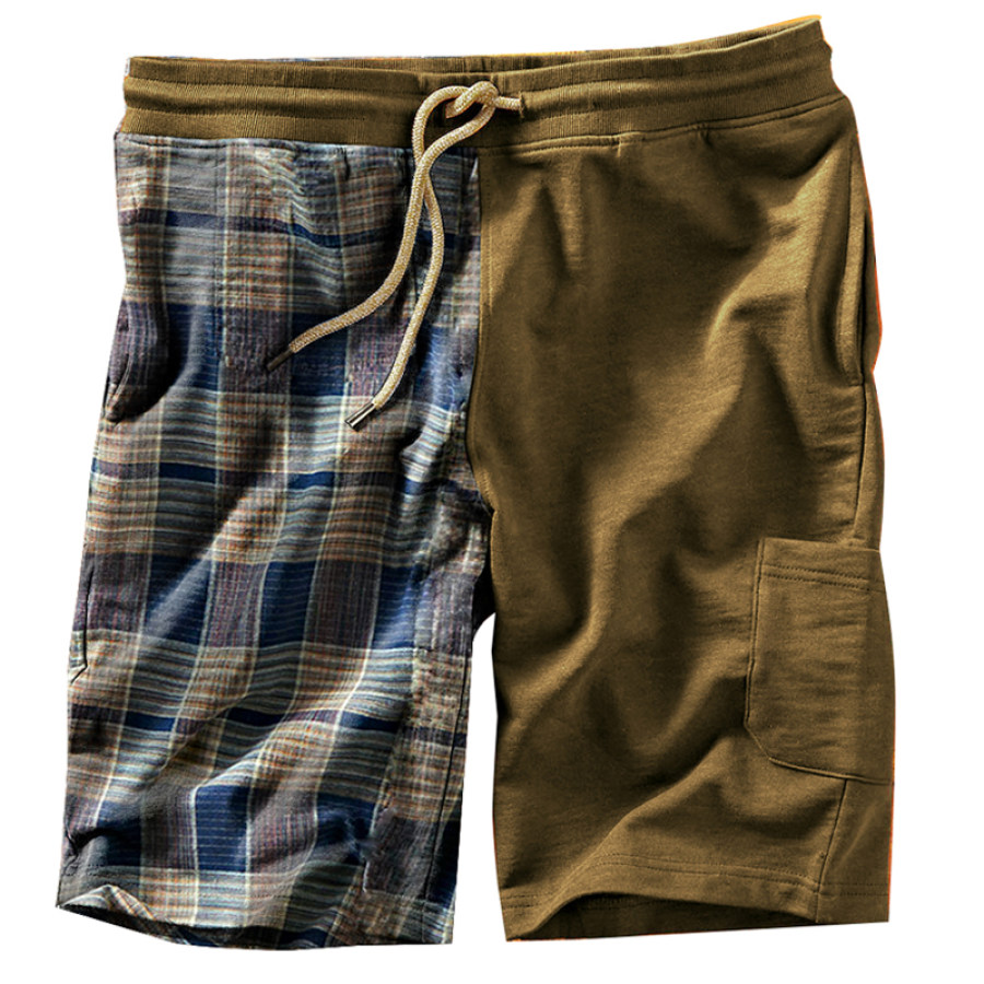 Men's Plaid Print Elastic Drawstring Casual Shorts |