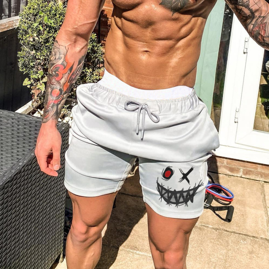 Men's Fashion Smiley Print Casual Slim Fit Shorts |