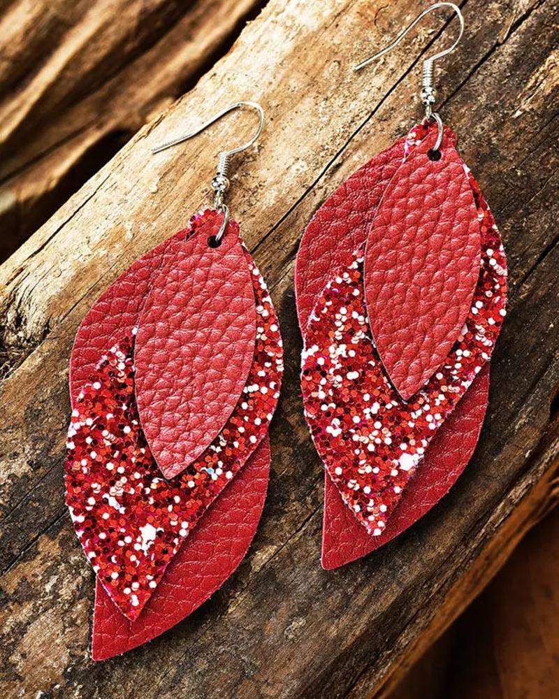 1Pair Glitter Leaf Multi-Layer Leather Drop Earrings |