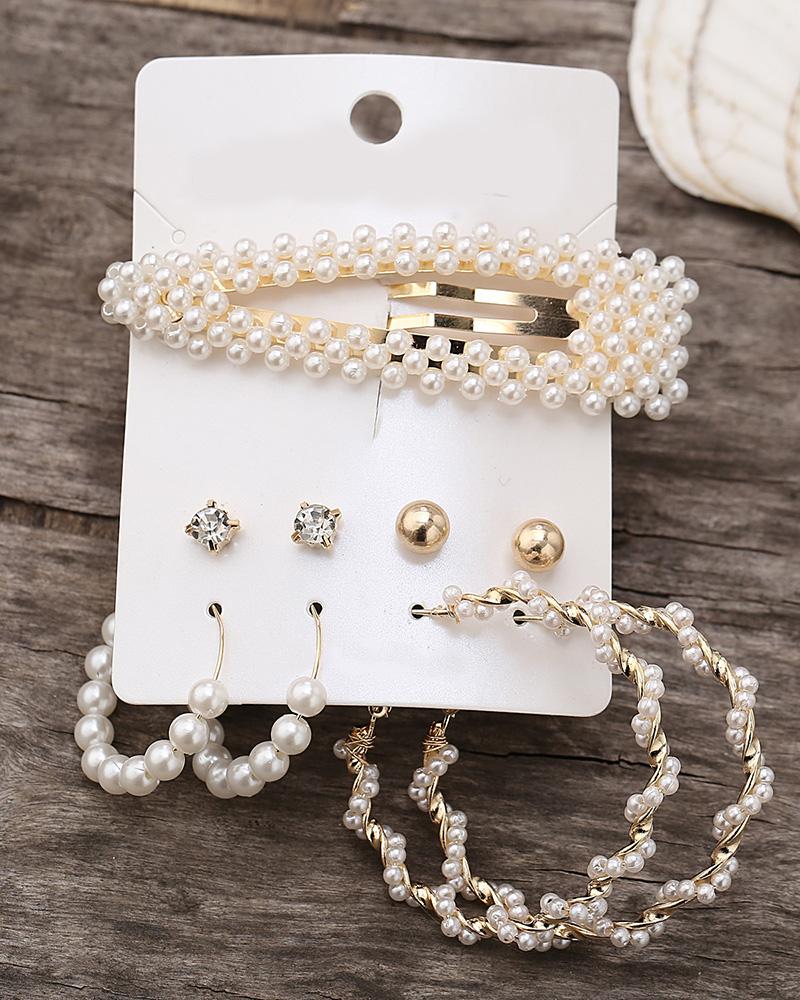 4 Pairs Beaded Hoop Tassel Ear Cuff Earring & Necklace & Hairpins Set |
