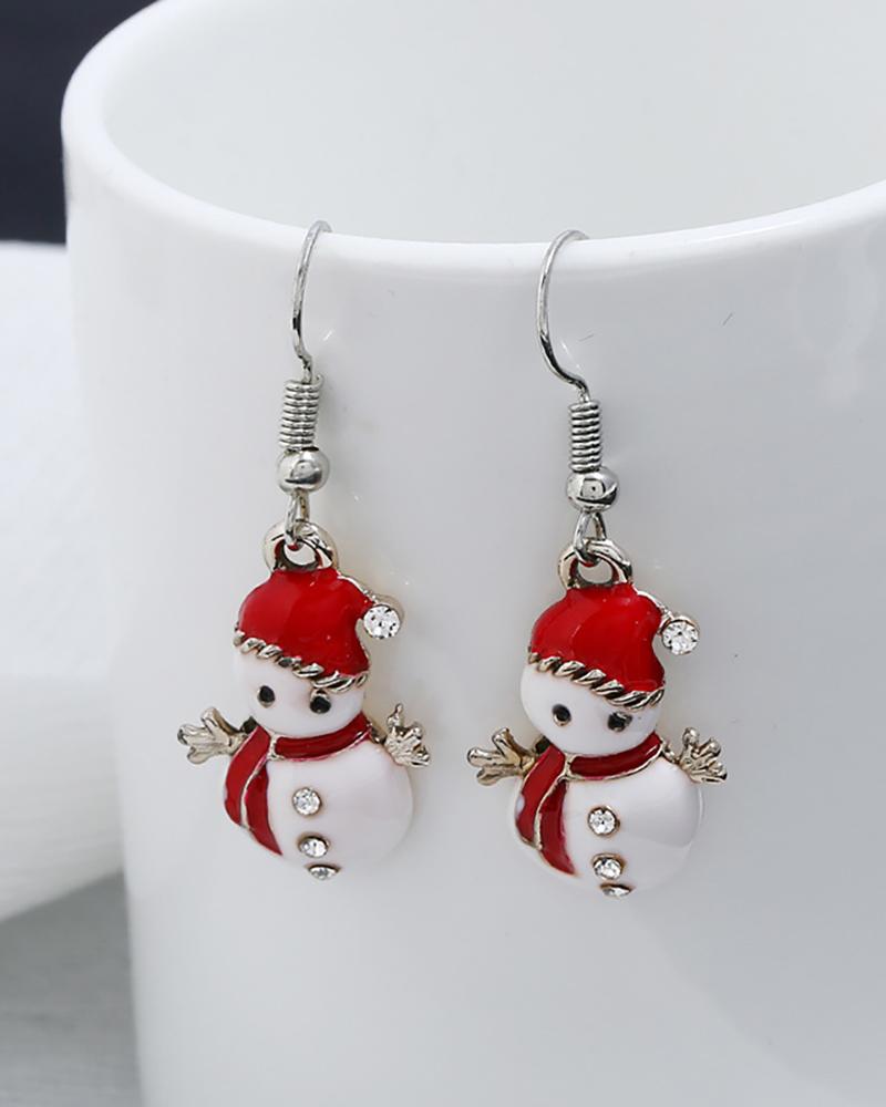 1Pair Christmas Snowman Pattern Studded Drop Earrings |