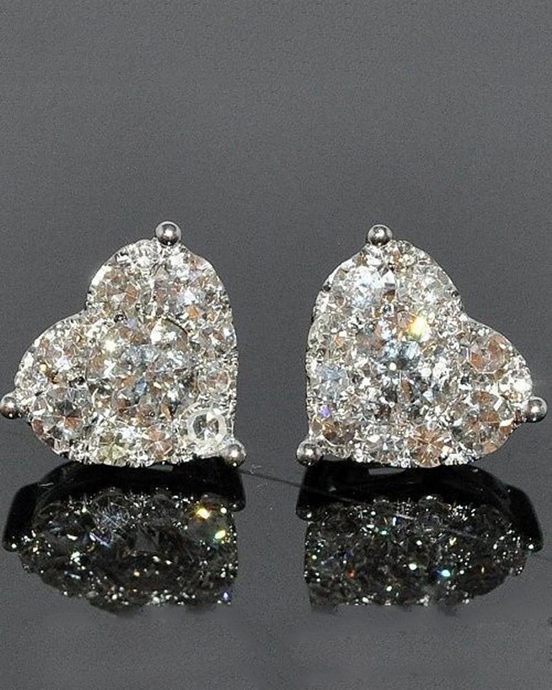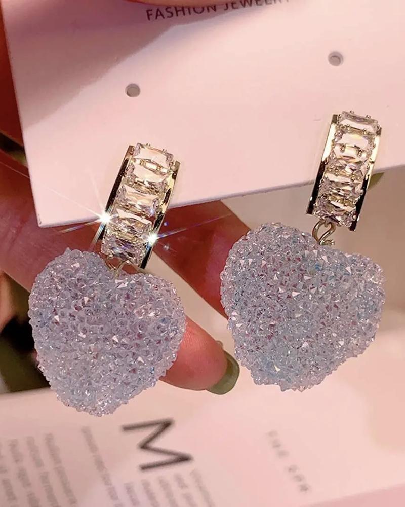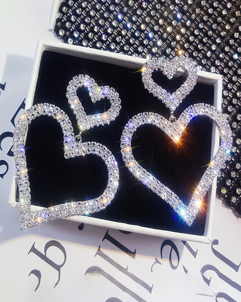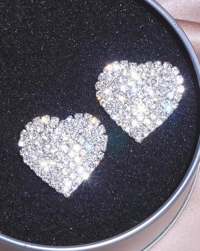 1Pair Allover Rhinestone Heart Shaped Earrings |