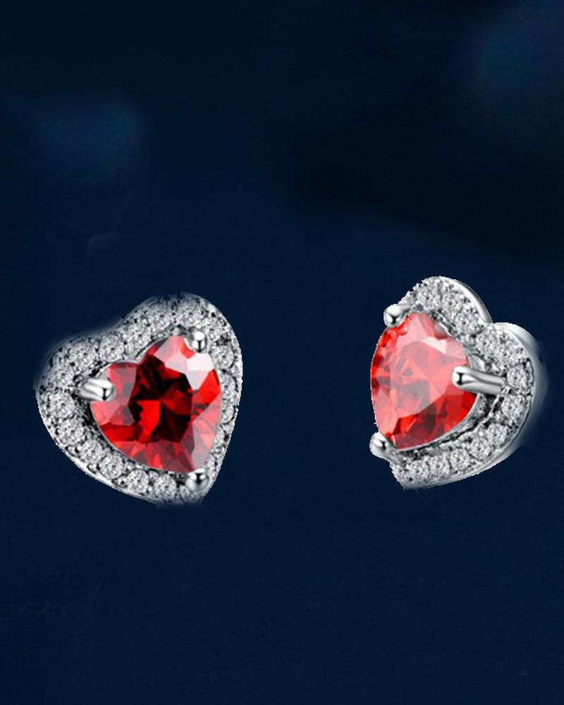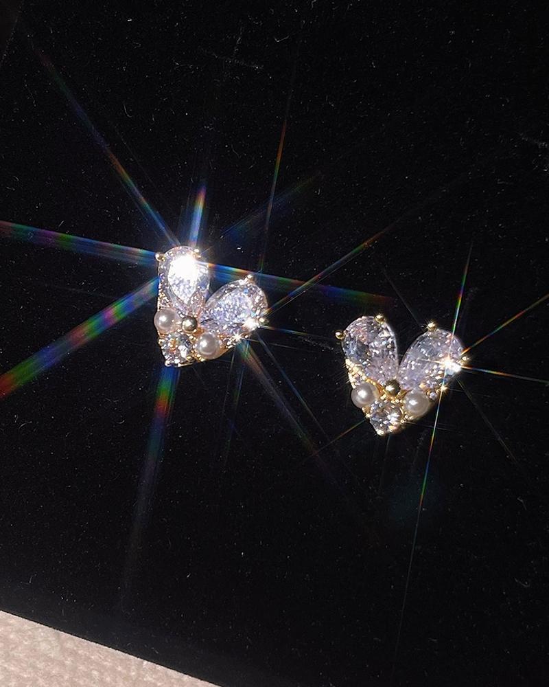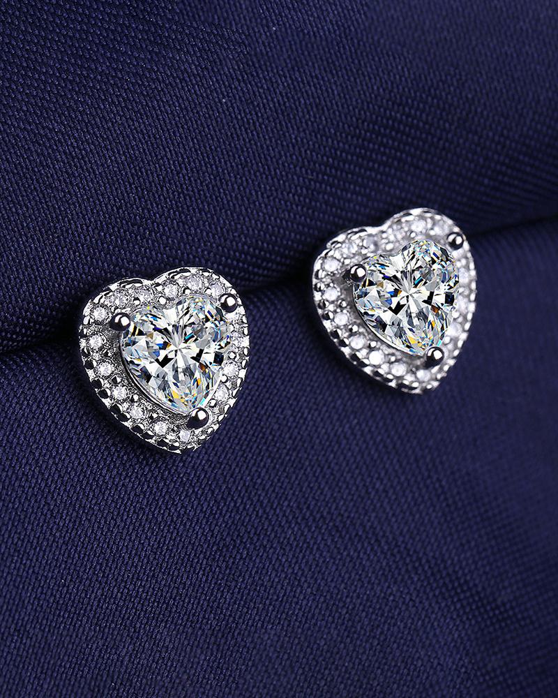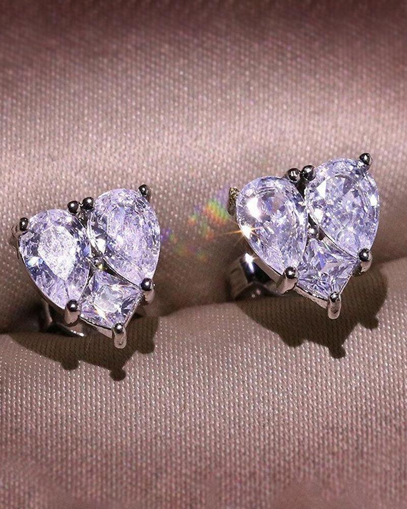 1Pair Allover Rhinestone Heart Shaped Earrings |