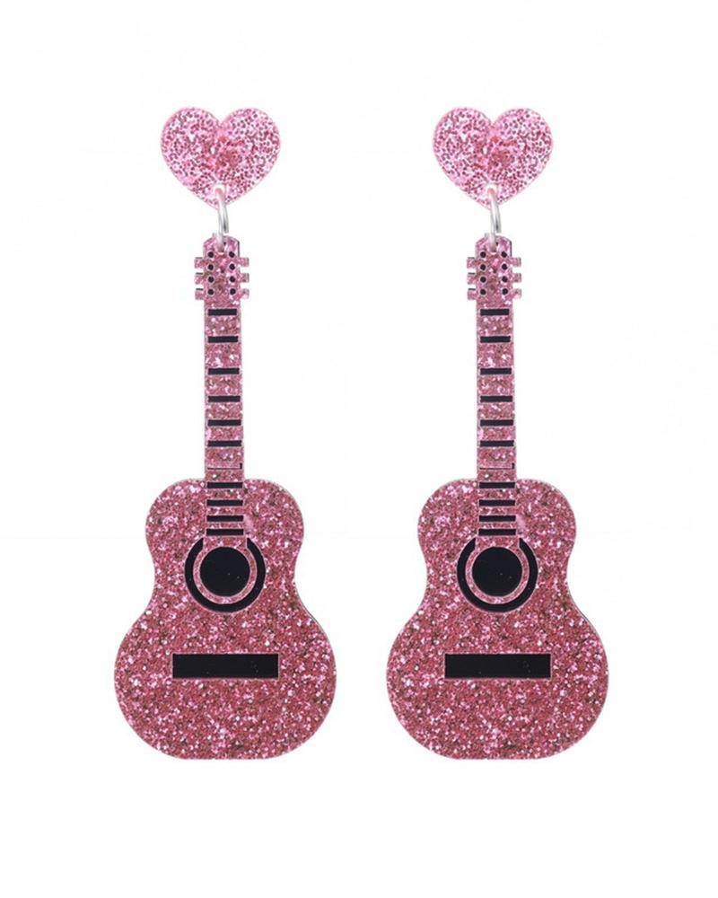 1Pair Valentine's Day Heart Guitar Shaped Drop Earrings |