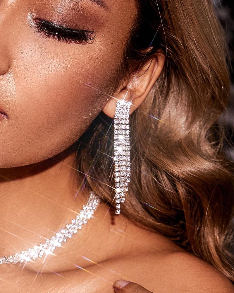 1Pair Allover Rhinestone Tassel Design Drop Earrings |