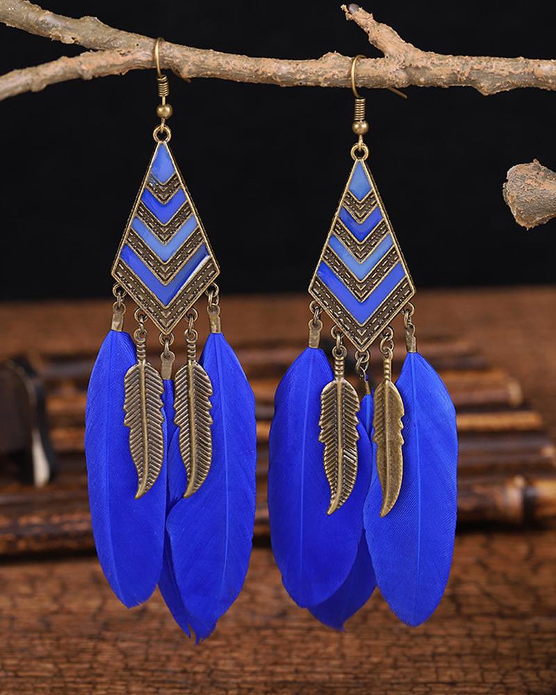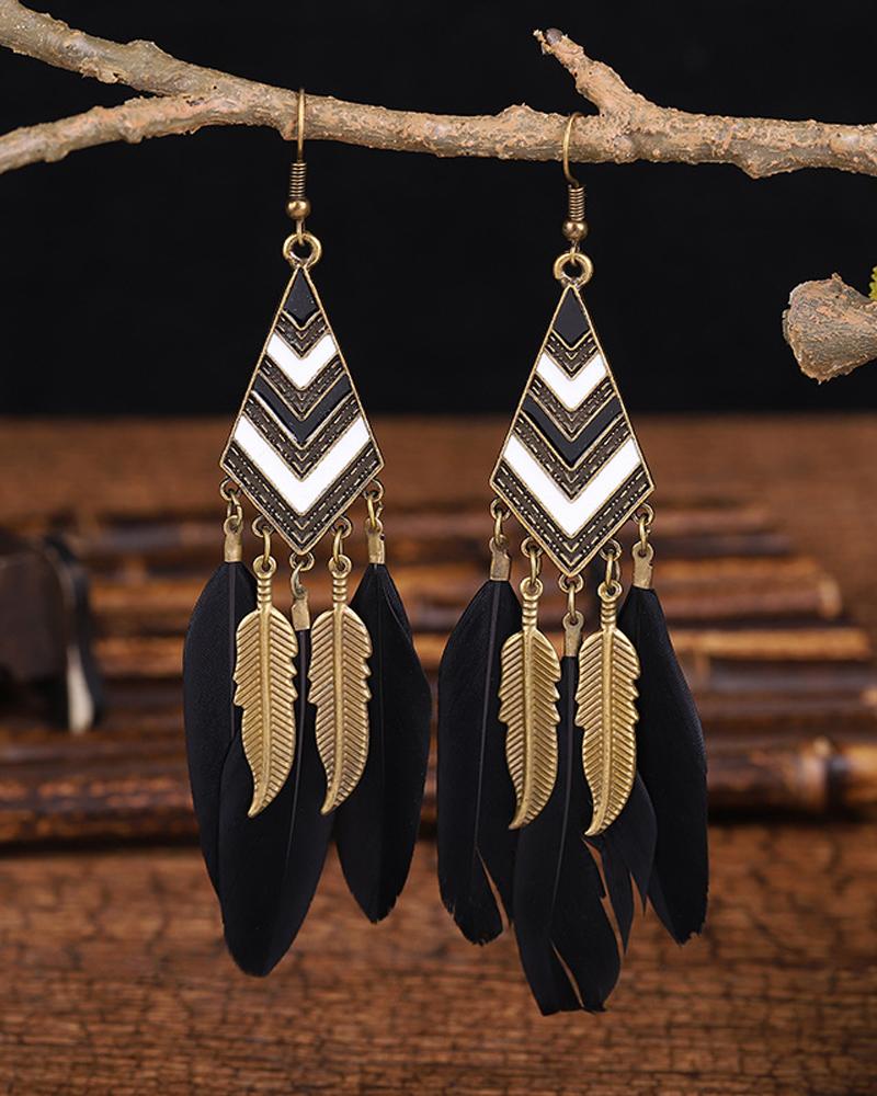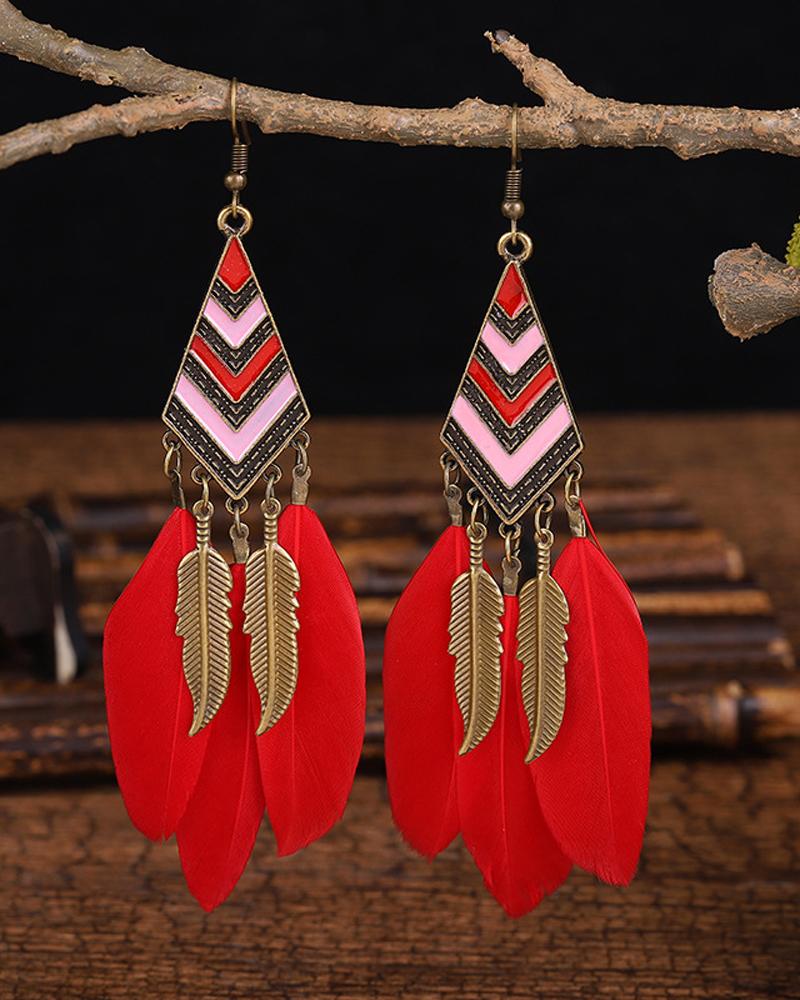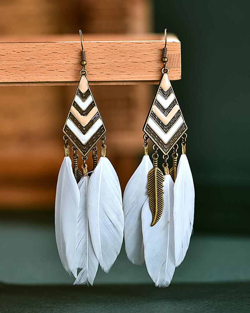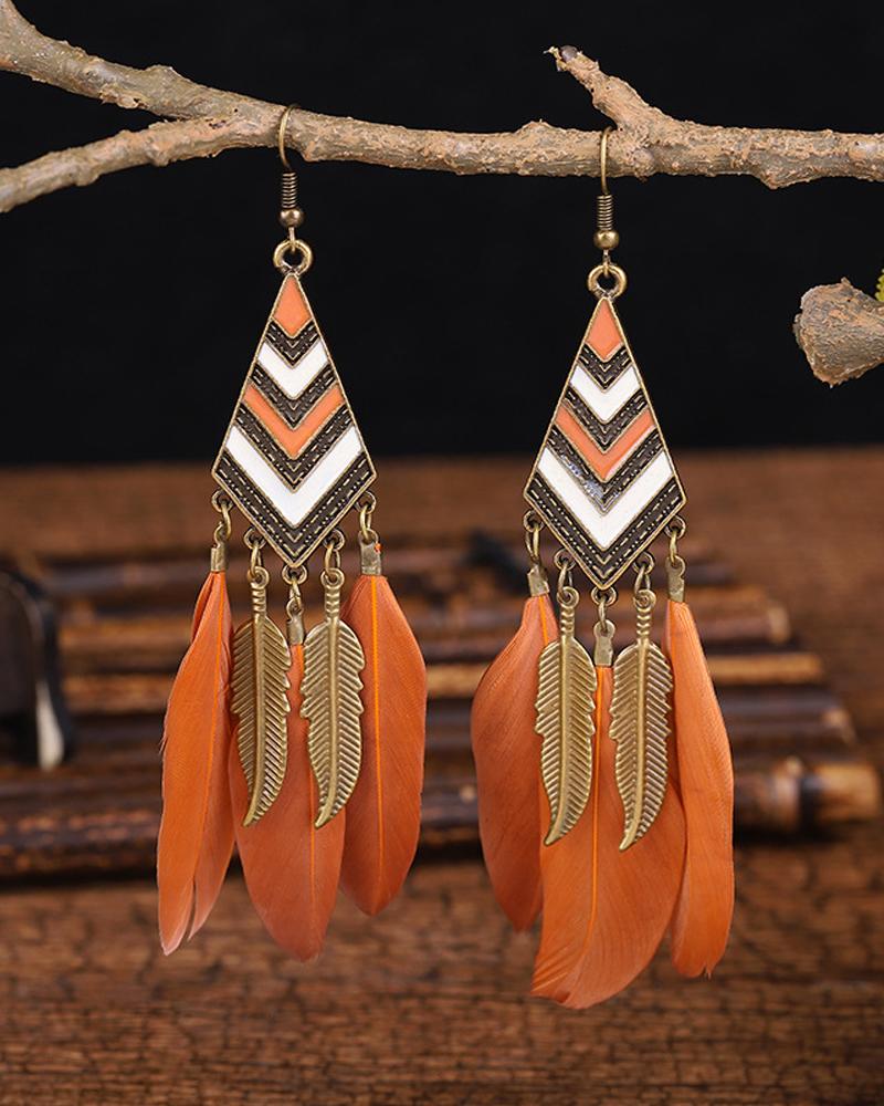 1Pair Feather Decor Dream Catcher Shaped Drop Earrings |