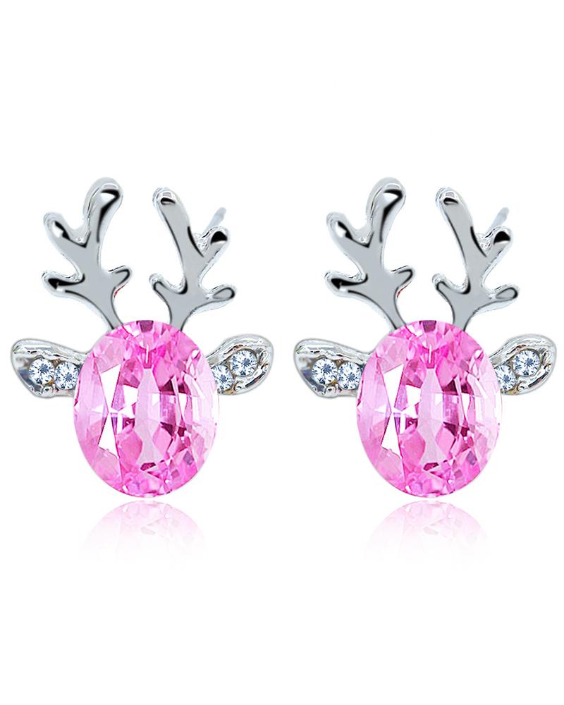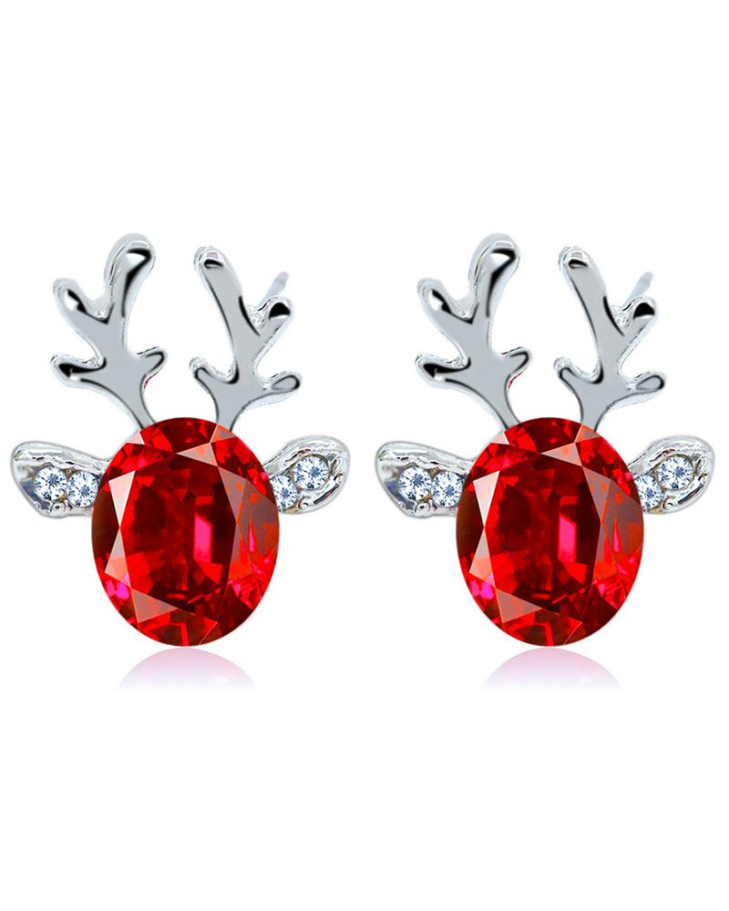 1Pair Christmas Reindeer Shaped Gem Stone Earrings |