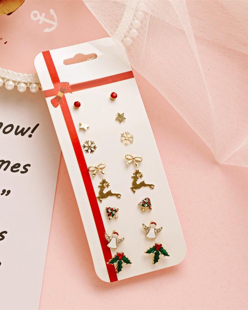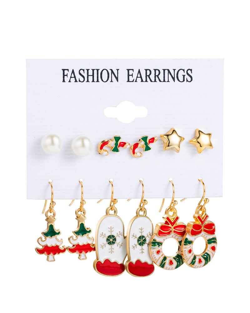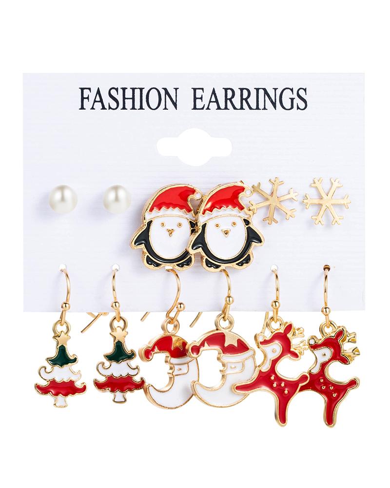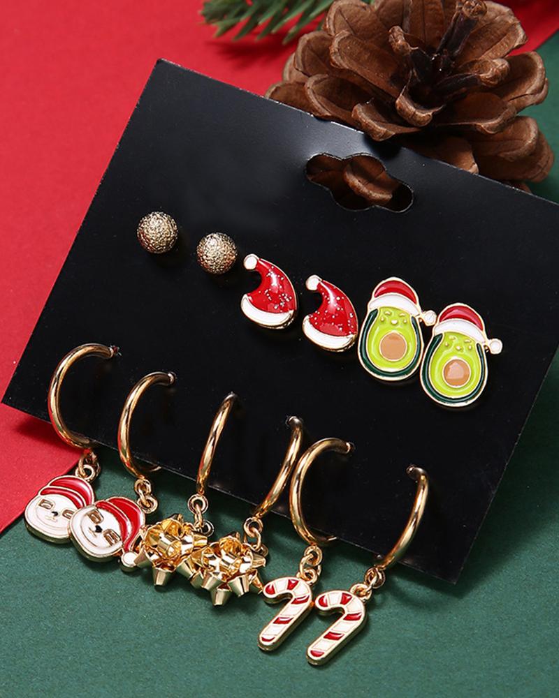 6Pairs Christmas Cartoon Graphic Earrings Set |