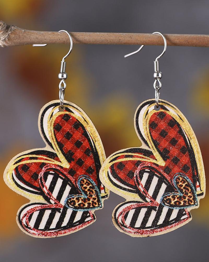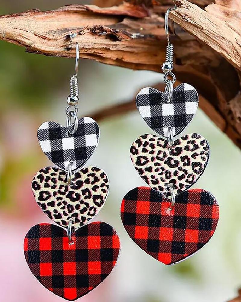 Valentine's Day Plaid Cheetah Print Heart Shaped Drop Earrings |