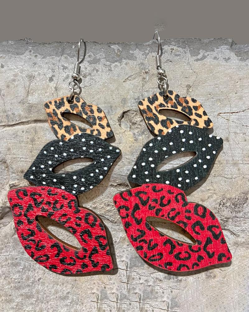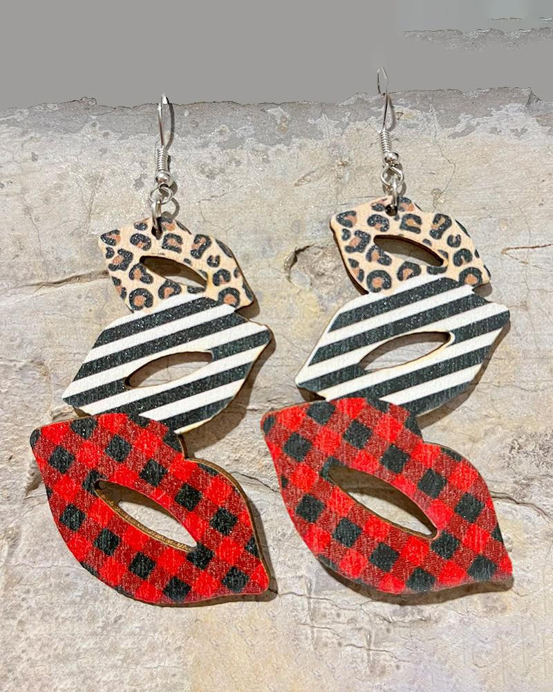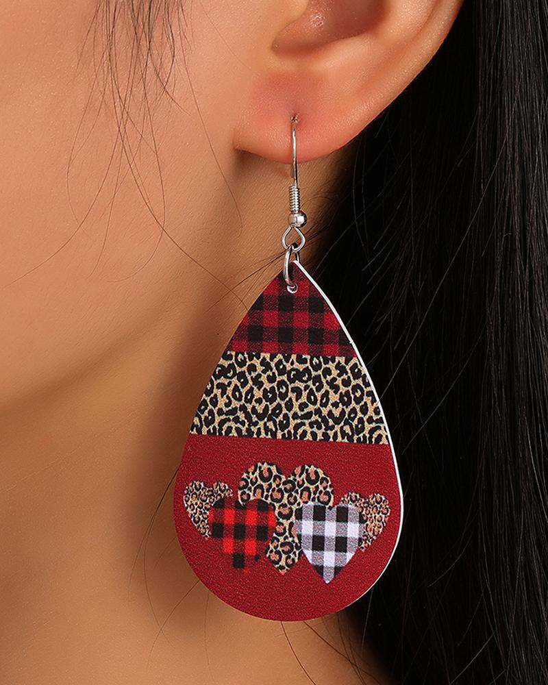 Valentine's Day Plaid Cheetah Print Waterdrop Shaped Earrings |