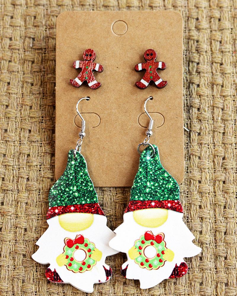 2Pairs Christmas Gingerbread Man Gnomes Shaped Drop Earrings Set |
