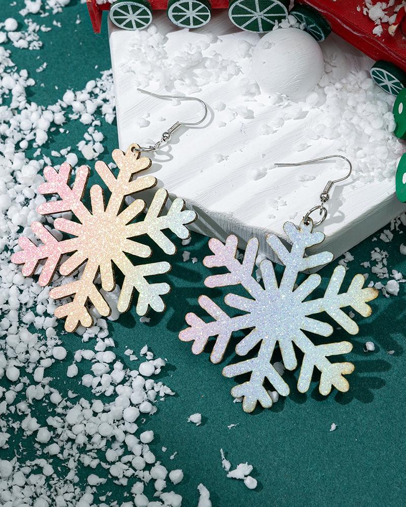 1Pair Christmas Snowflake Shaped Glitter Drop Earrings |