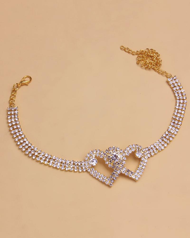 1pc Rhinestone Chain Double Heart Anklet |