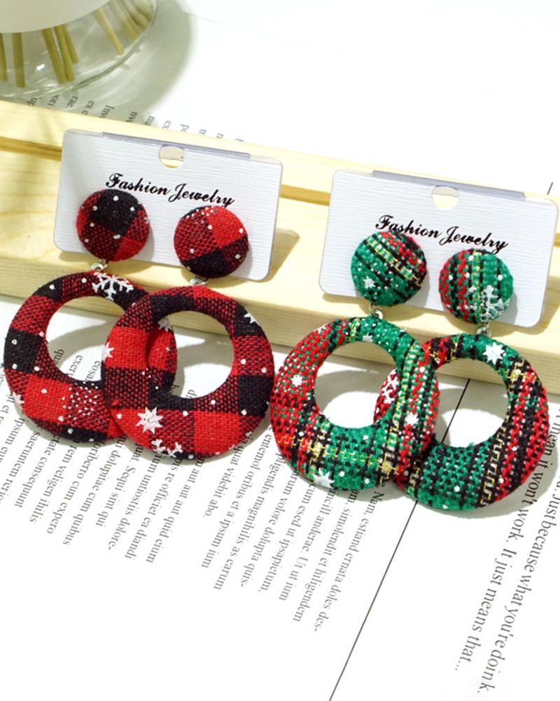 1Pair Christmas Plaid Snowflake Hoop Drop Earrings |