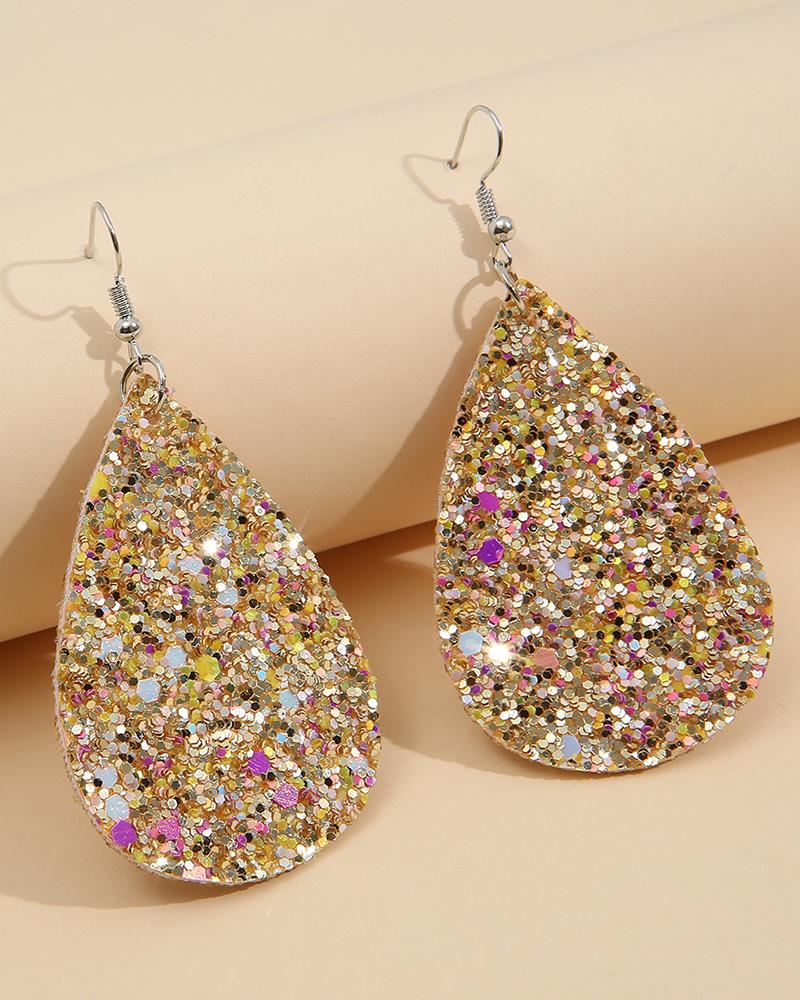 1Pair Valentine's Day Contrast Sequin Waterdrop Earrings |