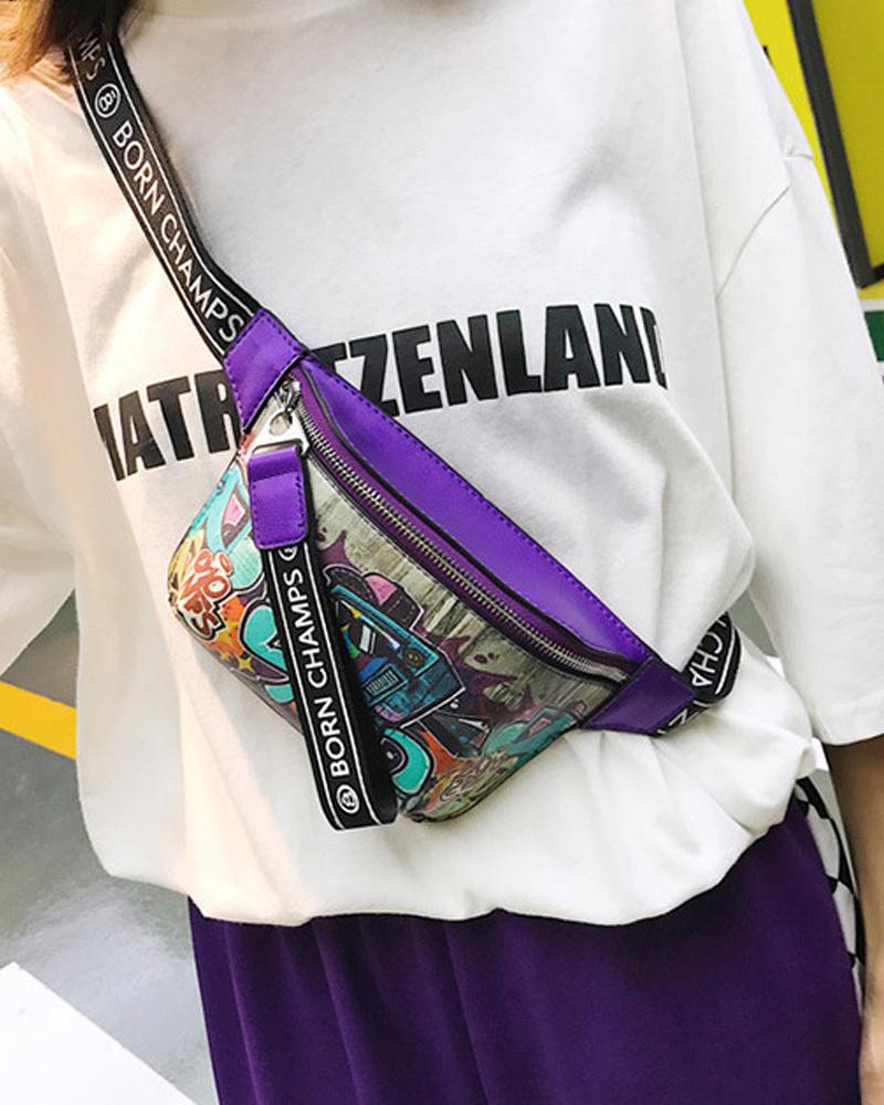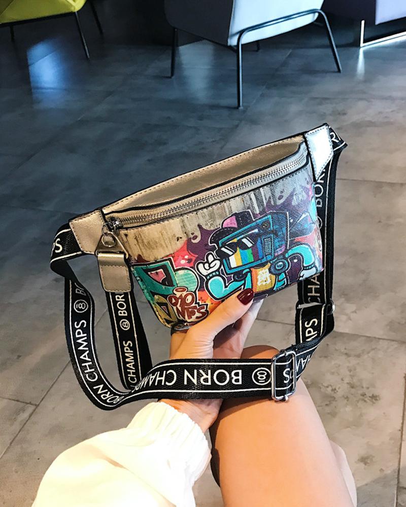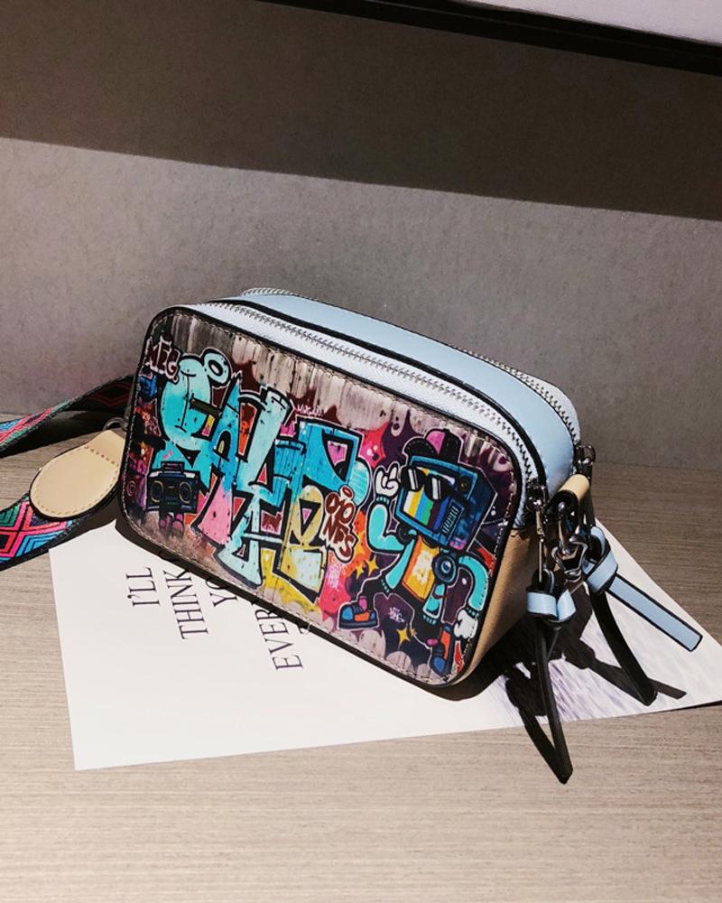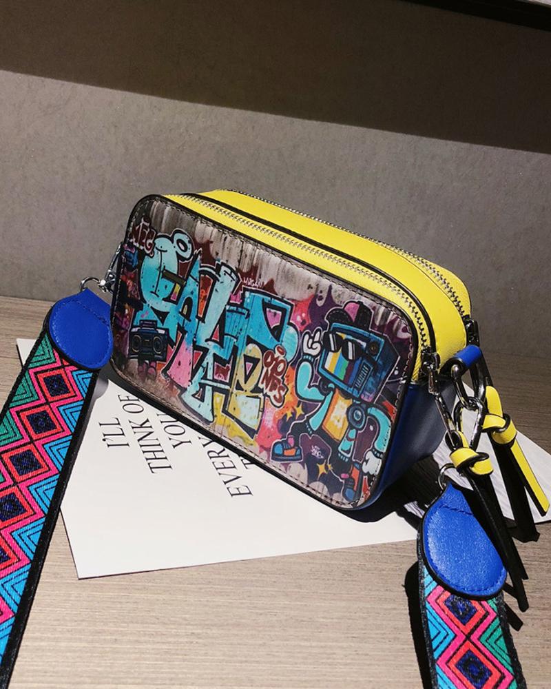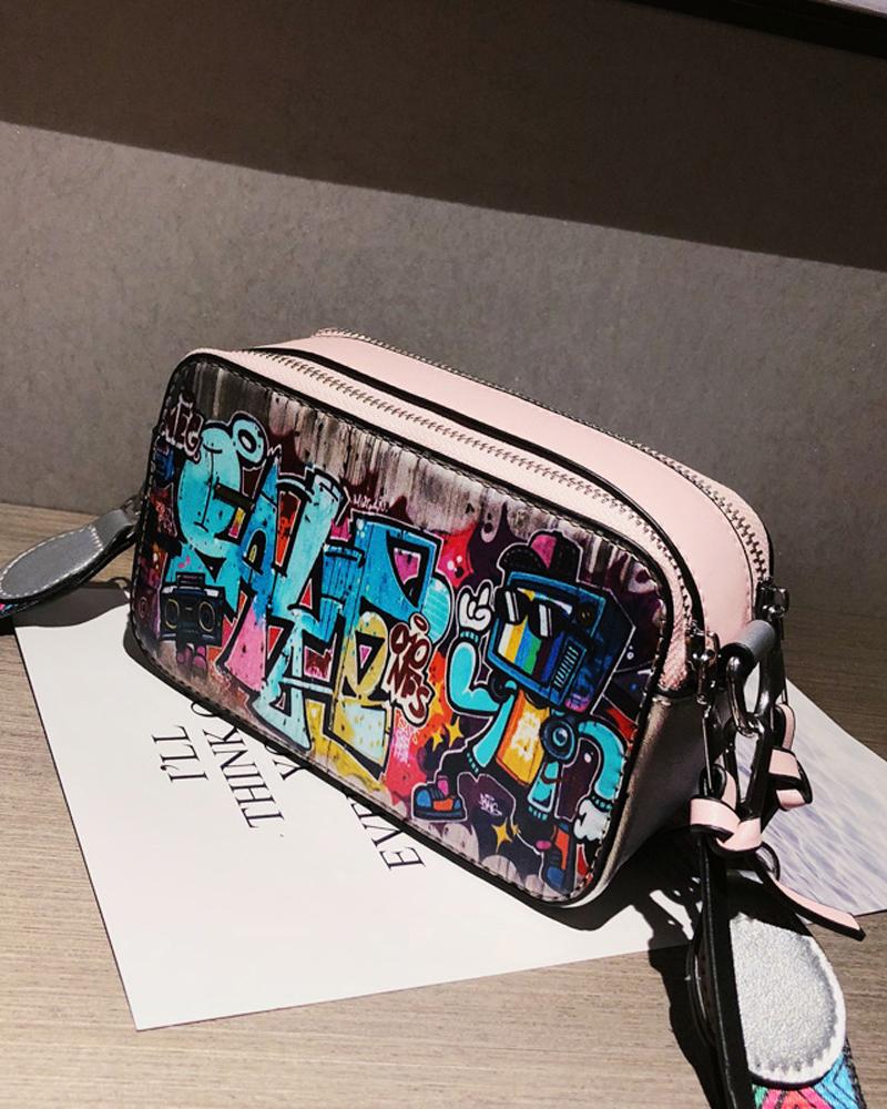 Graffiti Print Crossbody Bag |