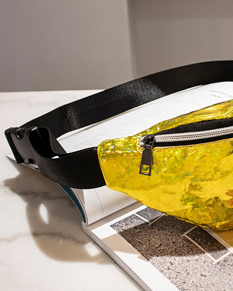 Zipper Design Reflective Holographic Waist Bag |