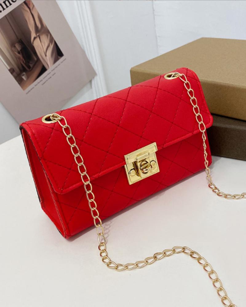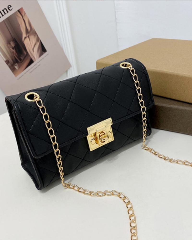 Quilted Twist Lock Chain Strap Flap Shoulder Bag |