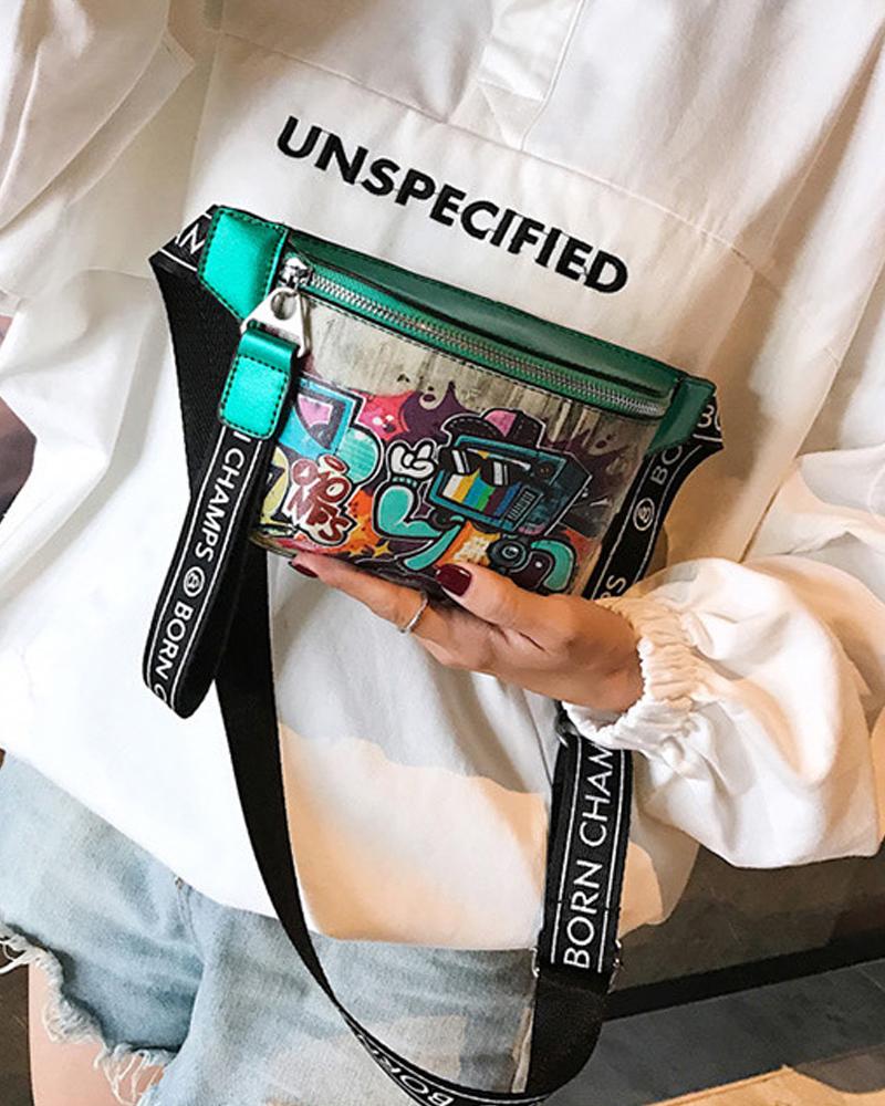 Graffiti Print Twist Lock Clear Flap Shoulder Bag With Handle |