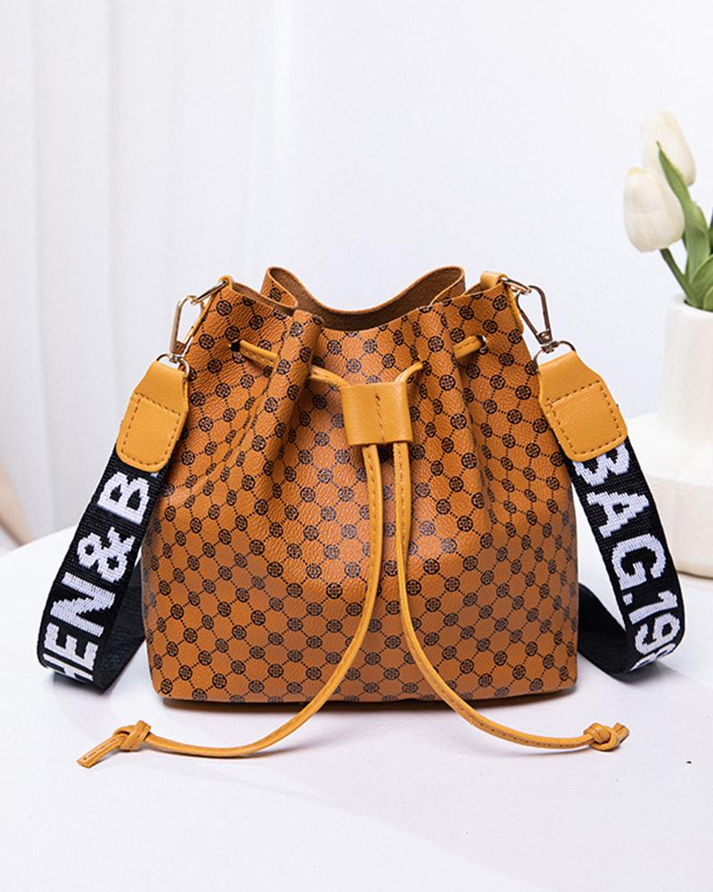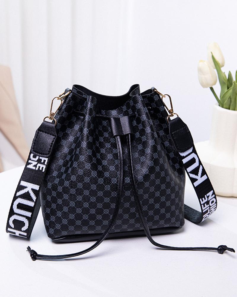 Drawstring Letter Band Bucket Bag |