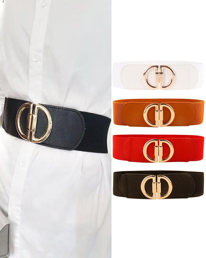 1pc Metal D-Buckle Elastic Wide Belt |