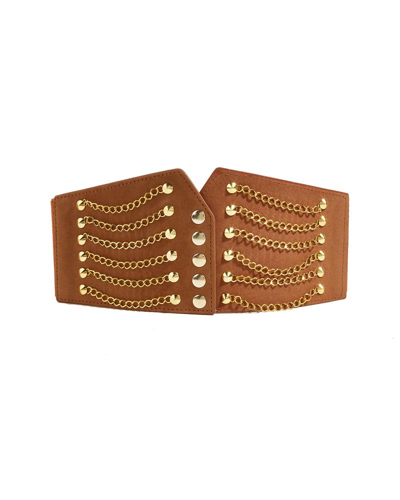 1pc Studded Chain Decor Elastic Wide Belt |