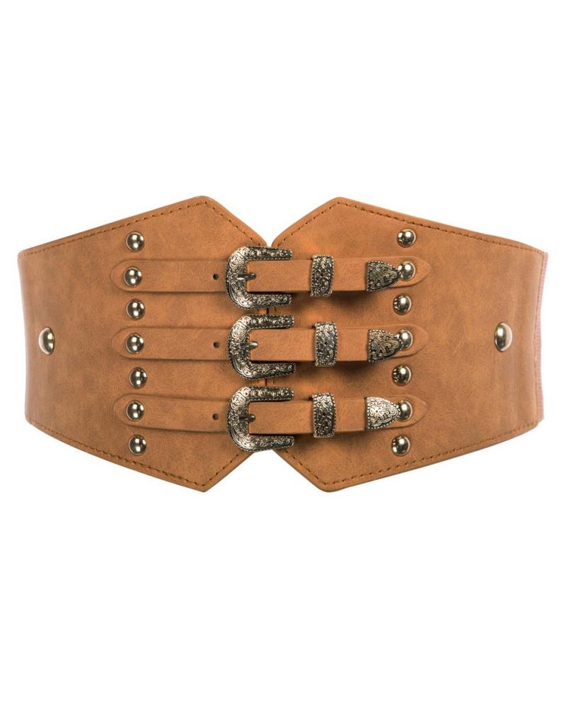 1pc Vintage Buckle Decor Elastic Wide Belt |