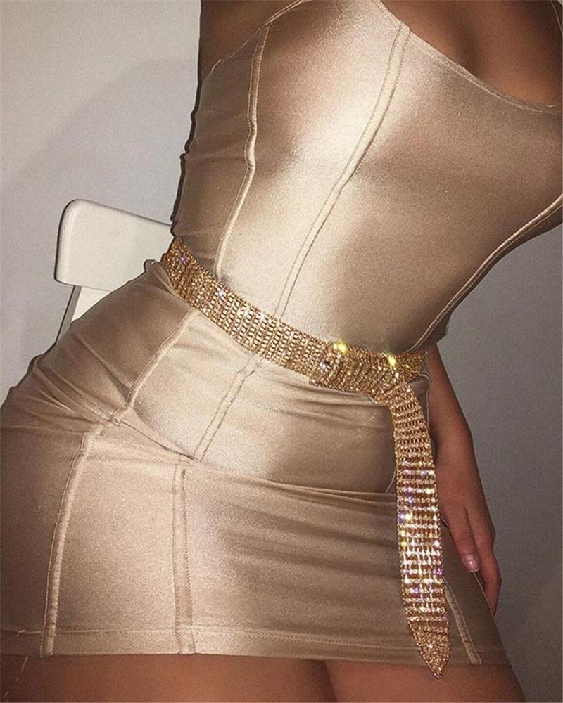 Allover Rhinestone Bling Waist Buckled Belt |