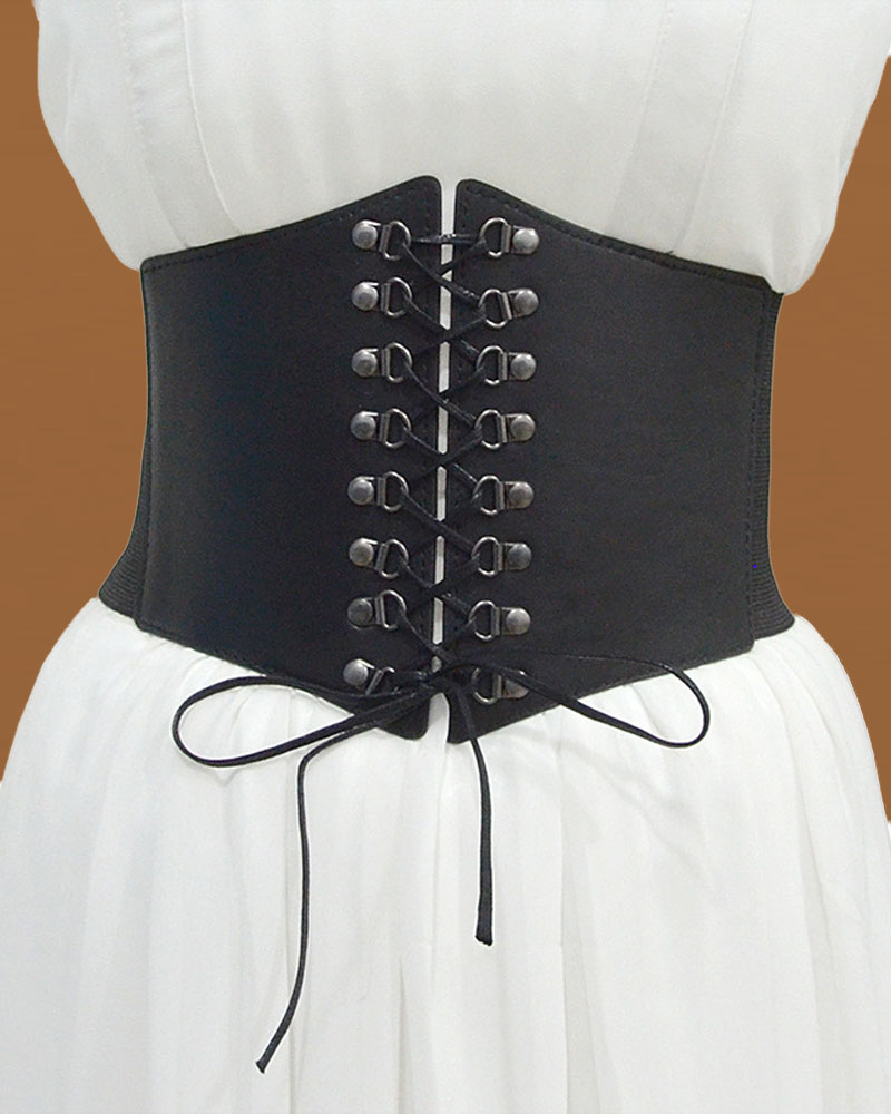 1pc Grommet Eyelet Chain Lace-up Elastic Wide Belt |