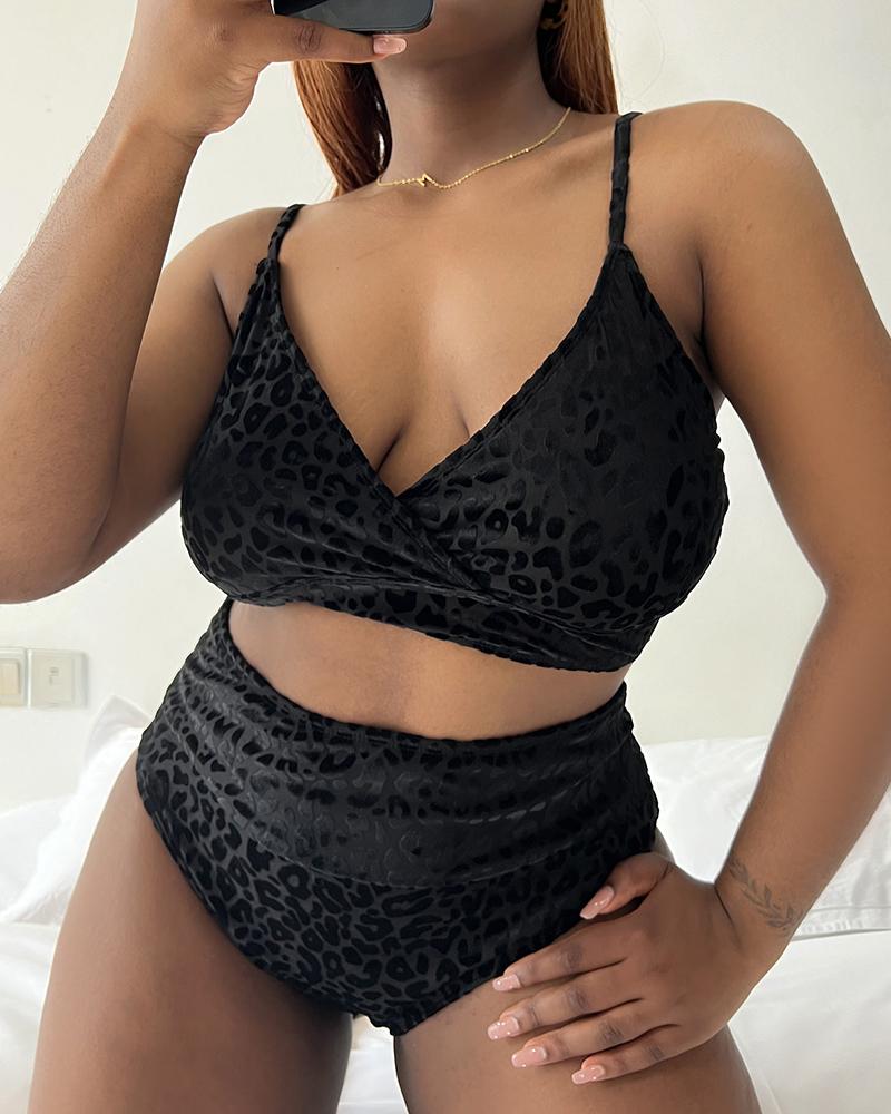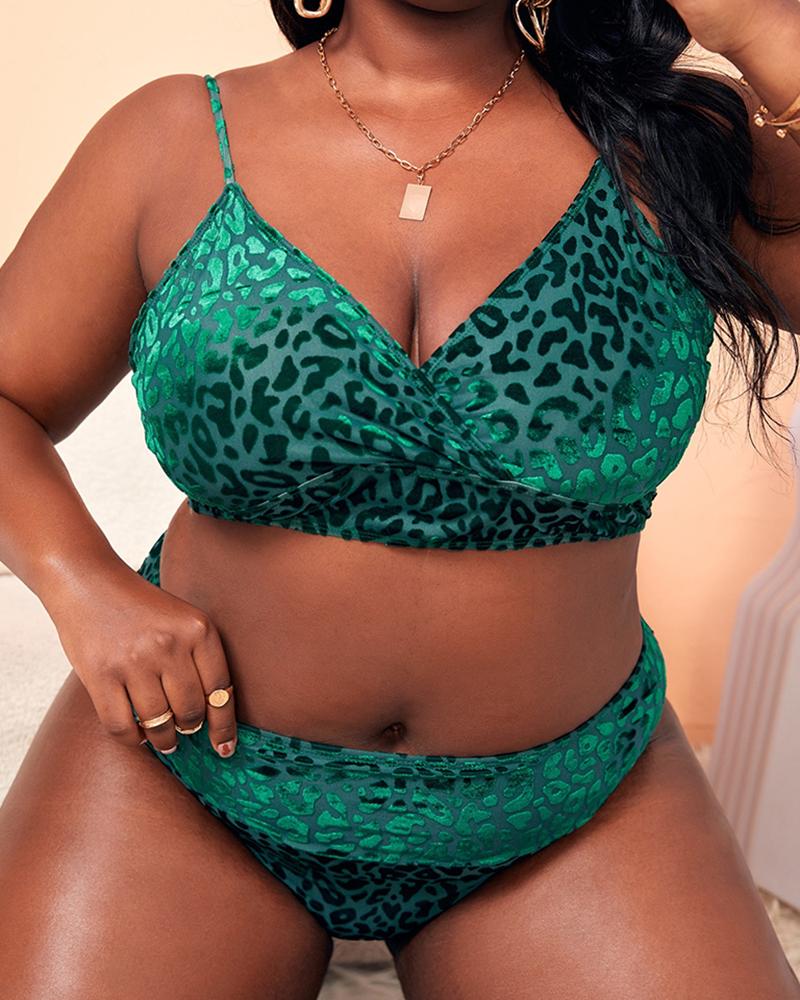 Plus Size Cheetah Print Tied Detail Bikini Set |