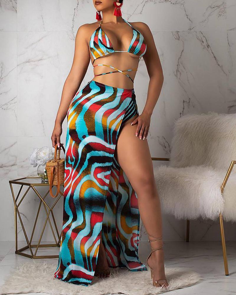 3PCS Tie Dye Print Crisscross Bikini Set With Cover Up |