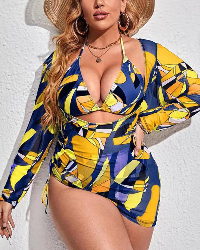 Plus Size 3PCS Abstract Print Bikini Set With Cover Up |