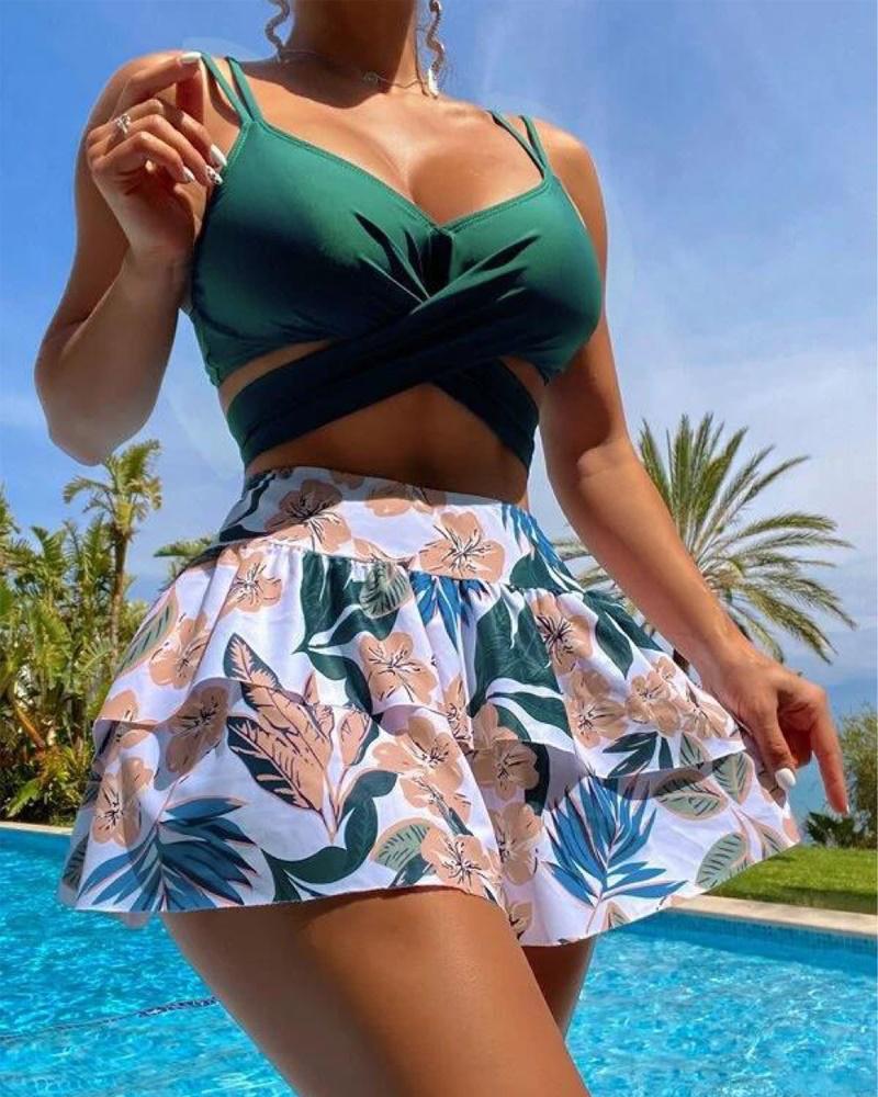 3PCS Crisscross Bikini Set With Cover Up |