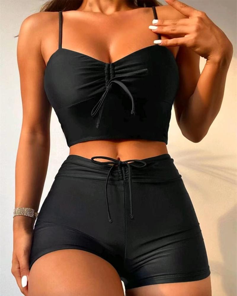 Chain Strap Halter Drawstring Bikini Set |