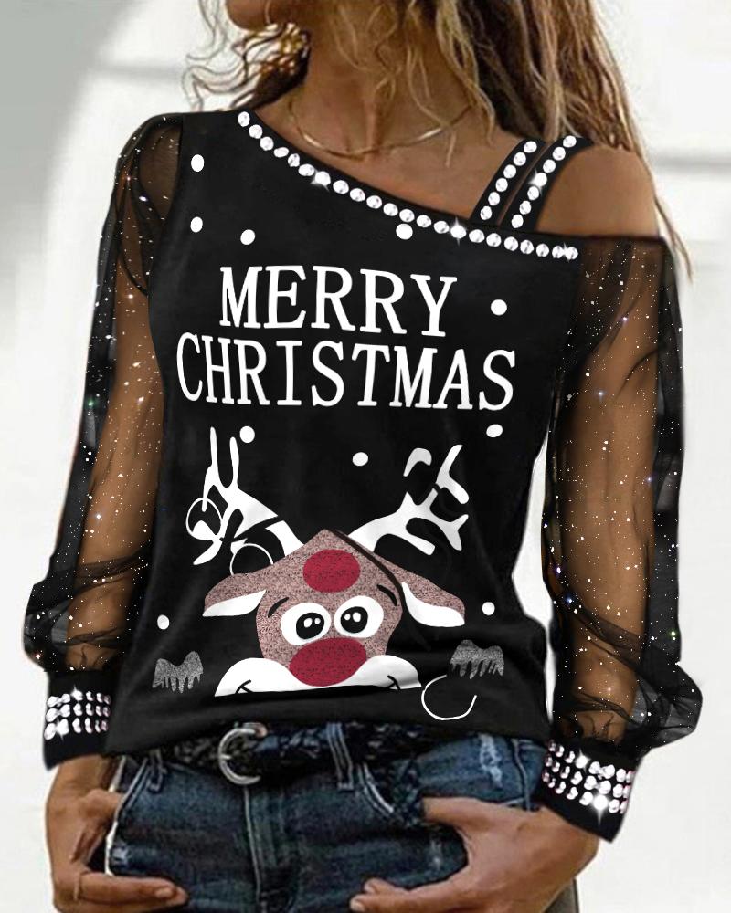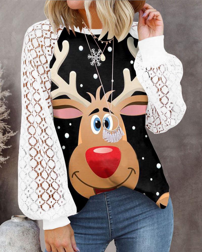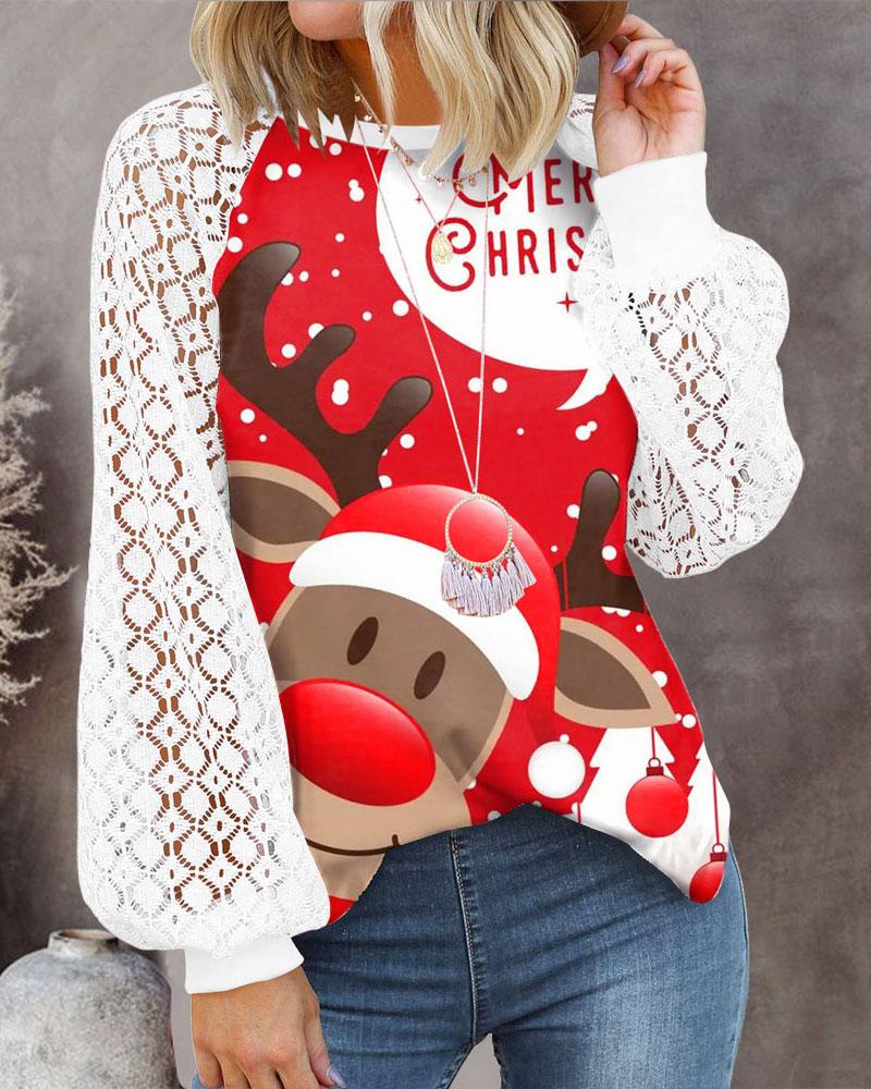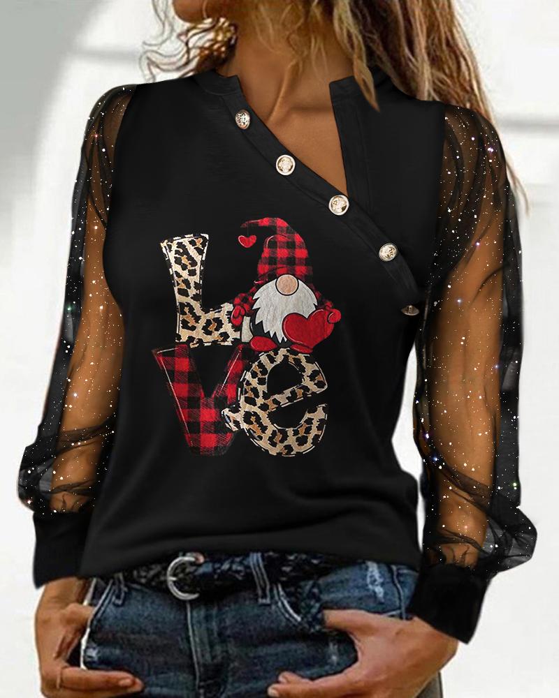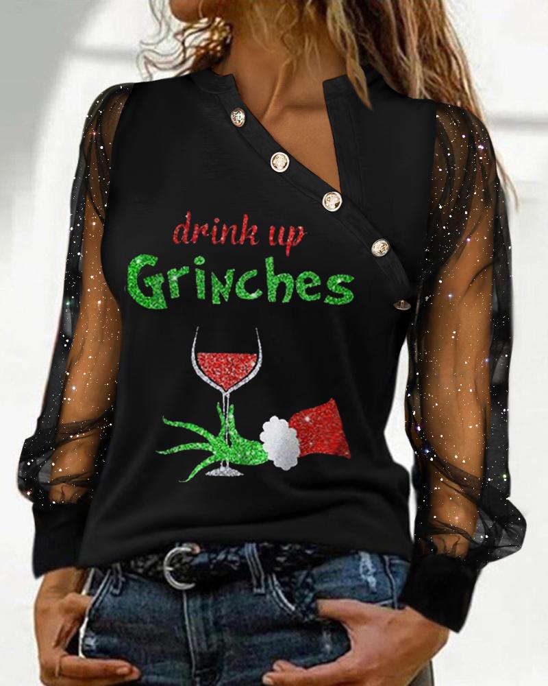 Christmas Wine Glasses Snowman Print Sheer Mesh Lace Top |