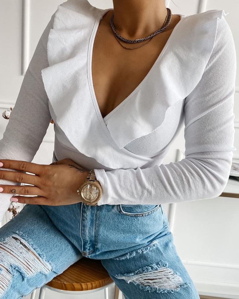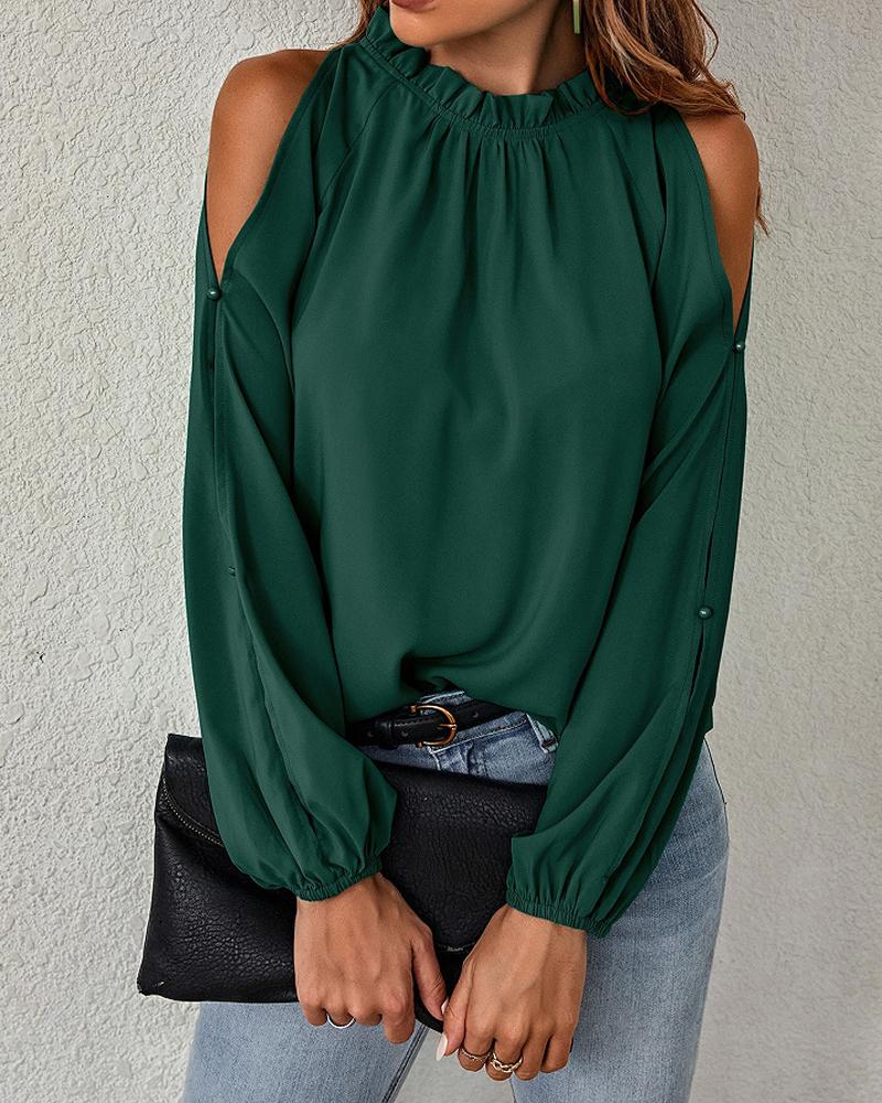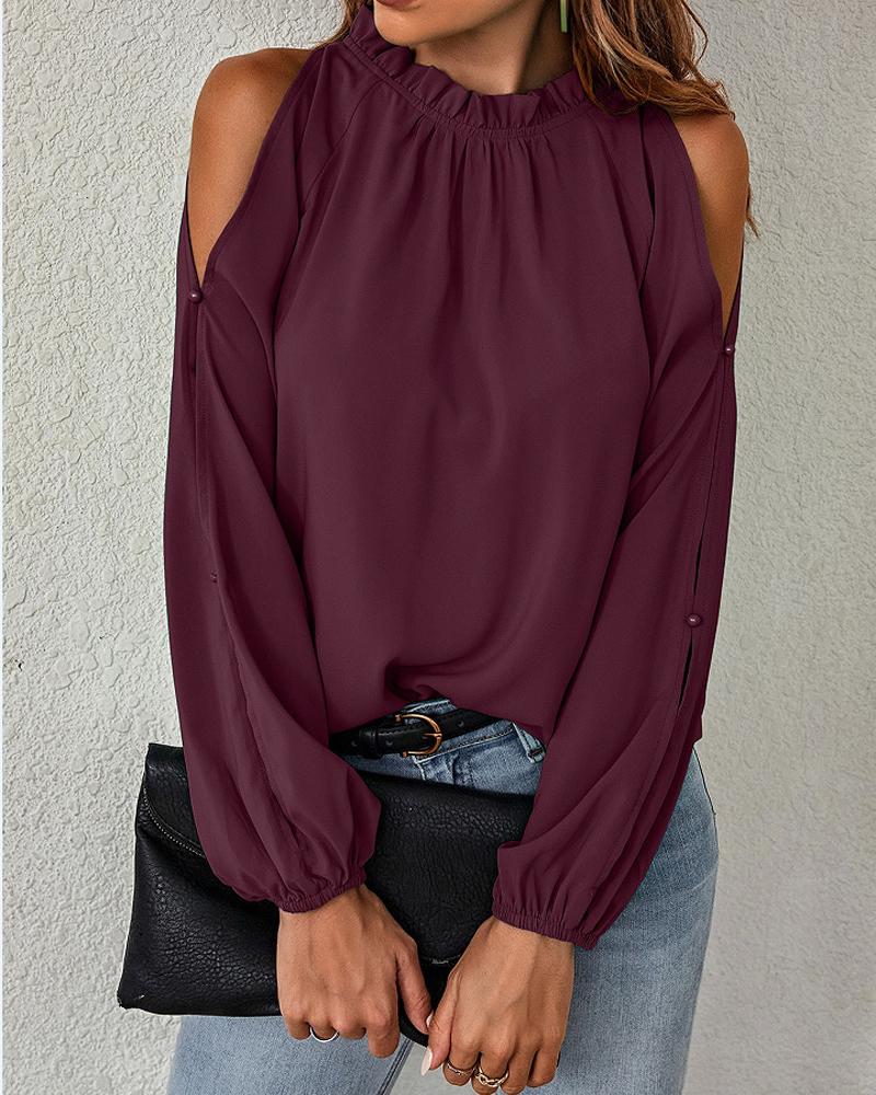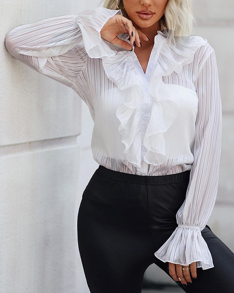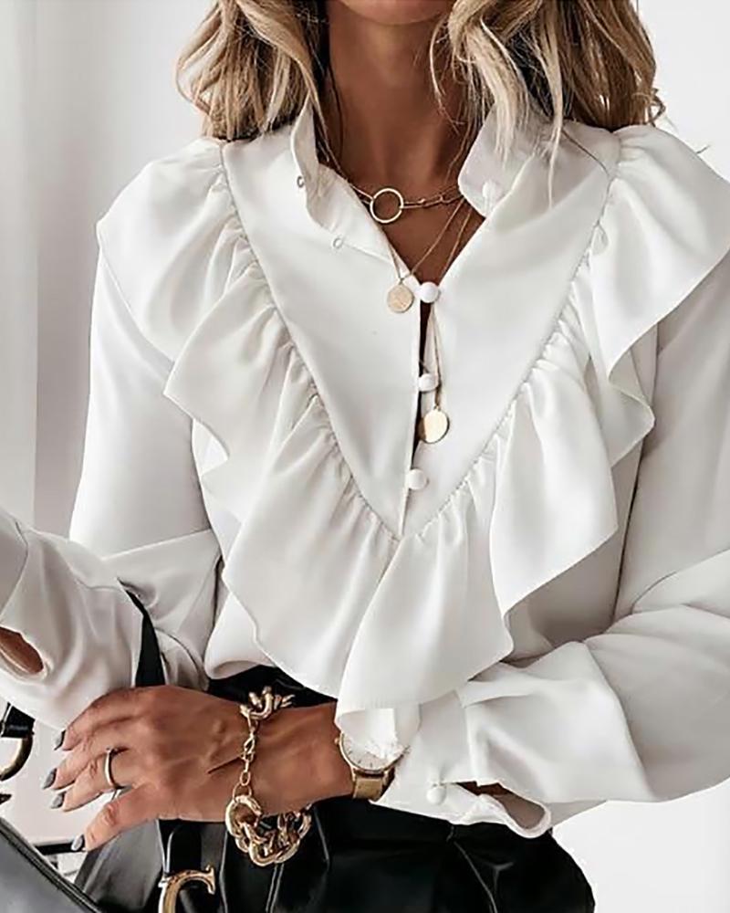Ruffles Button Design Long Sleeve Top |