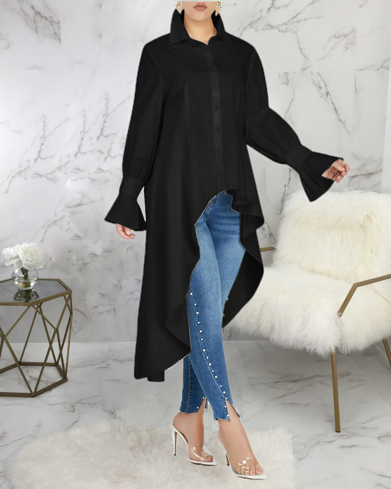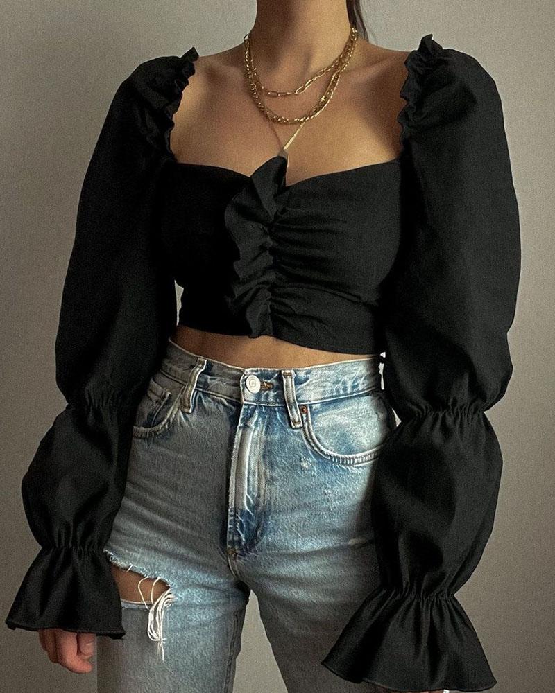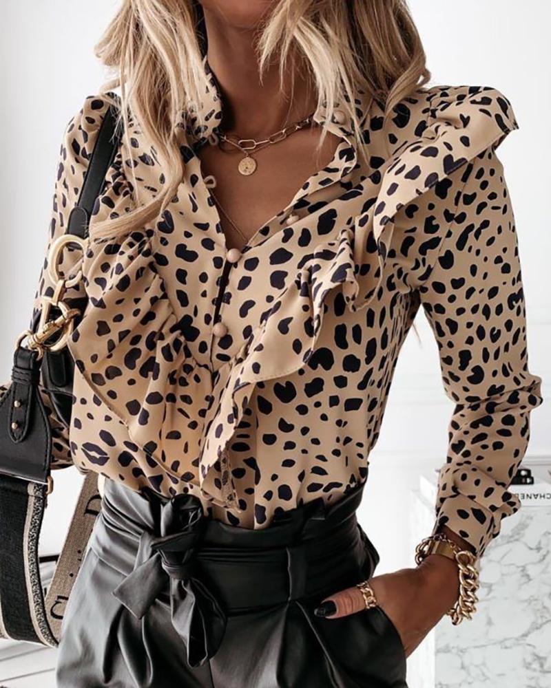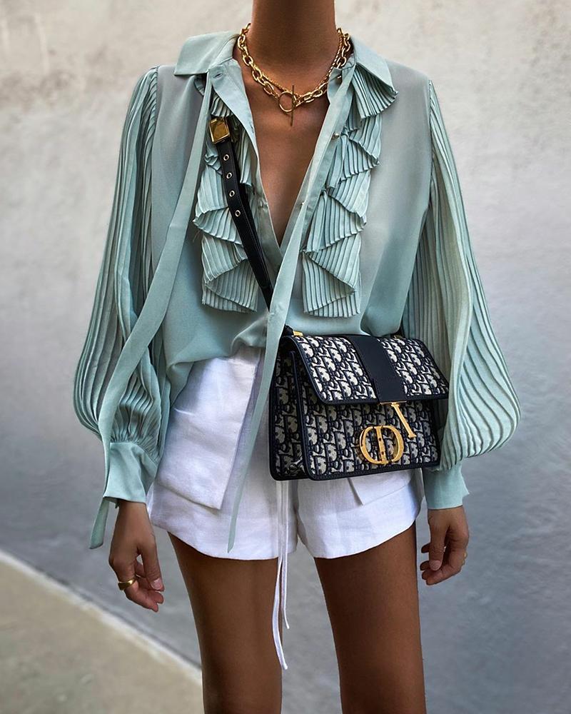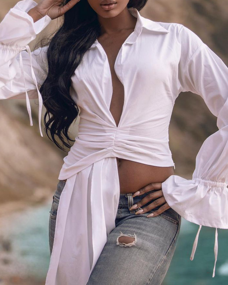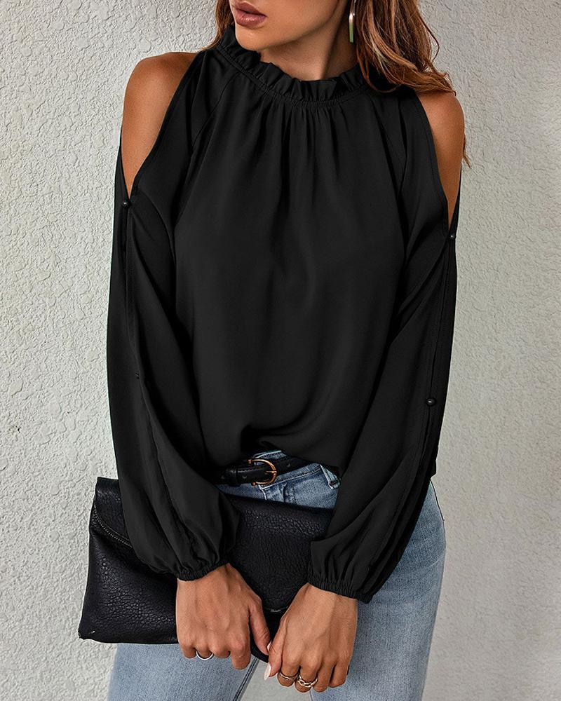 Ruffles Button Design Long Sleeve Top |