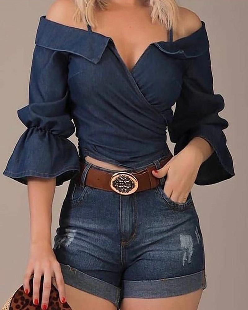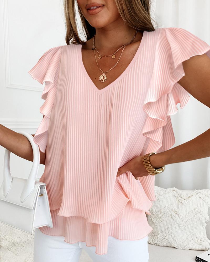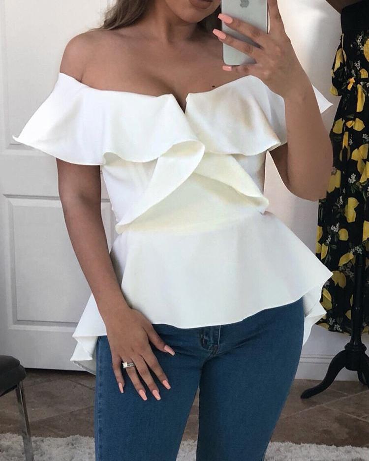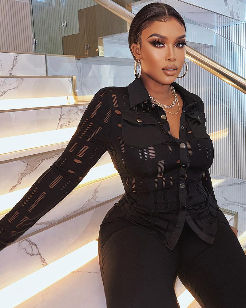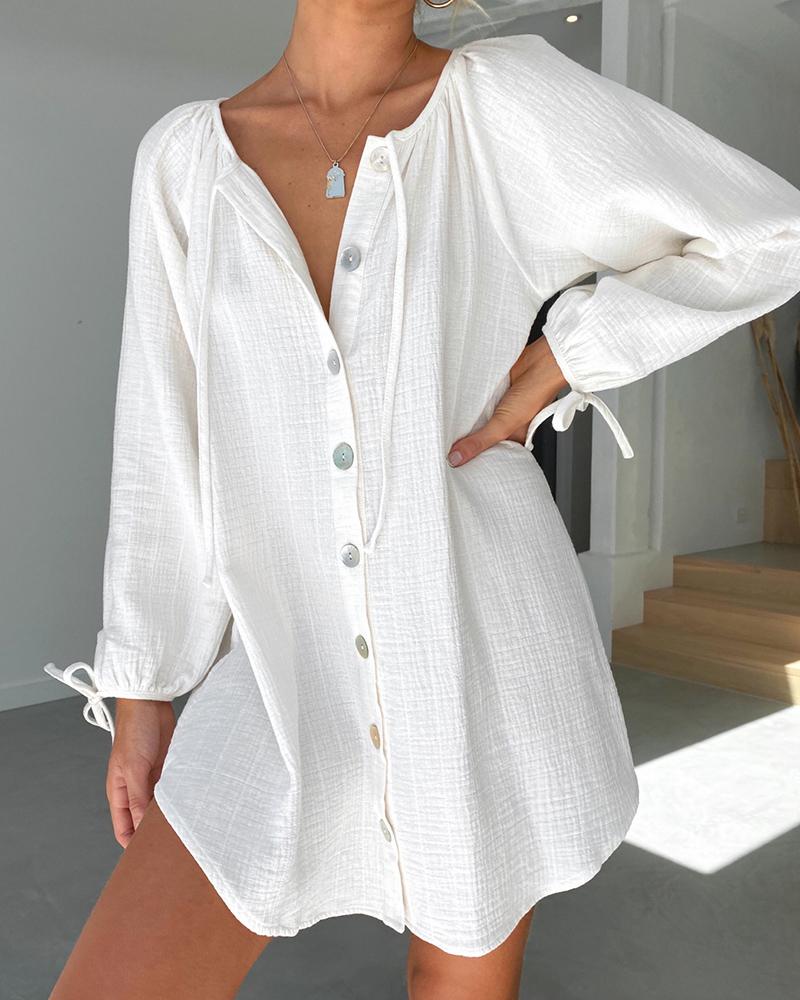 Ruffles Button Design Long Sleeve Top |