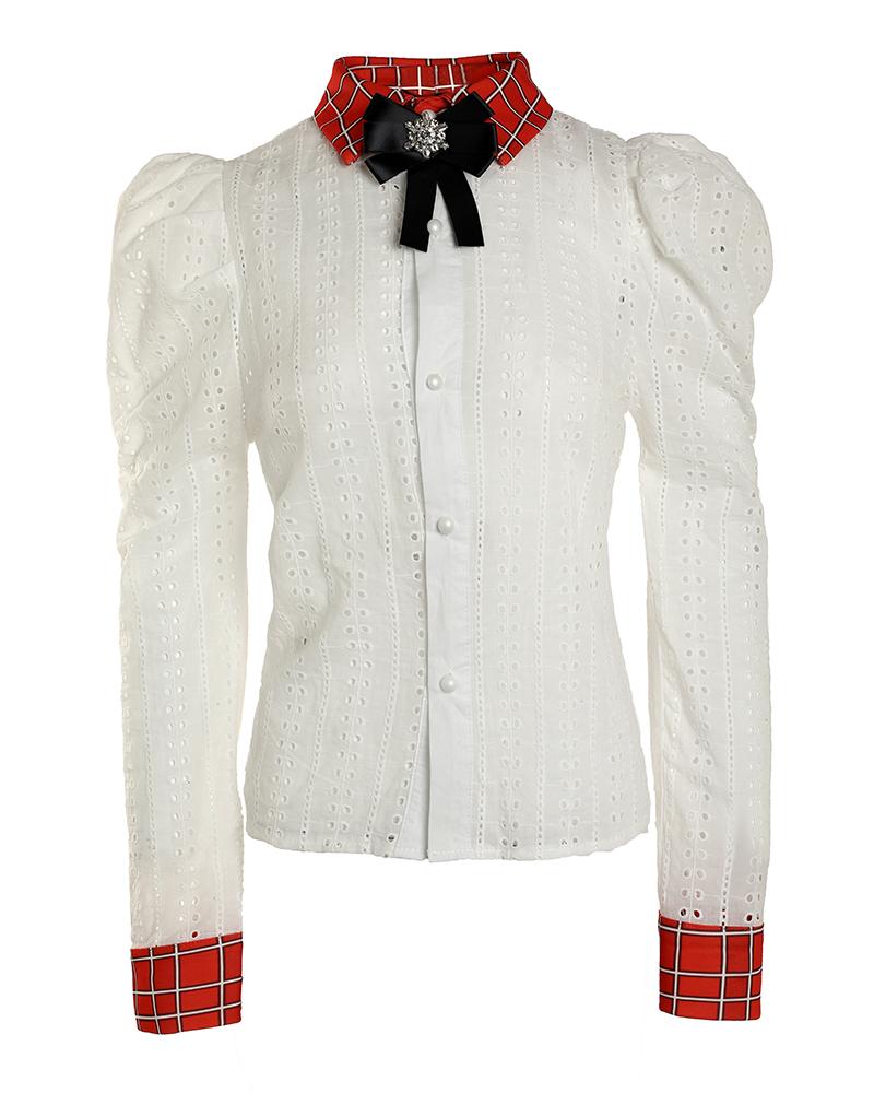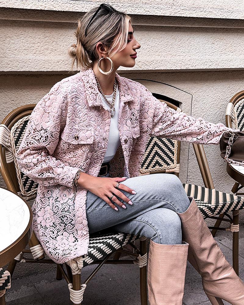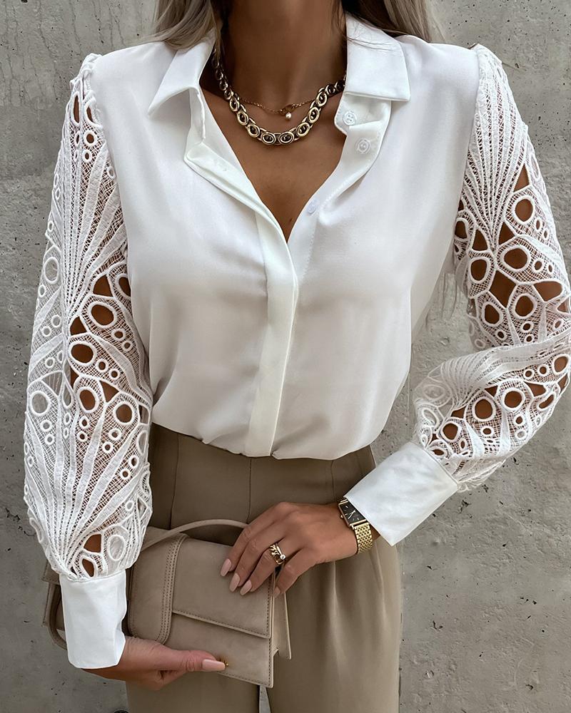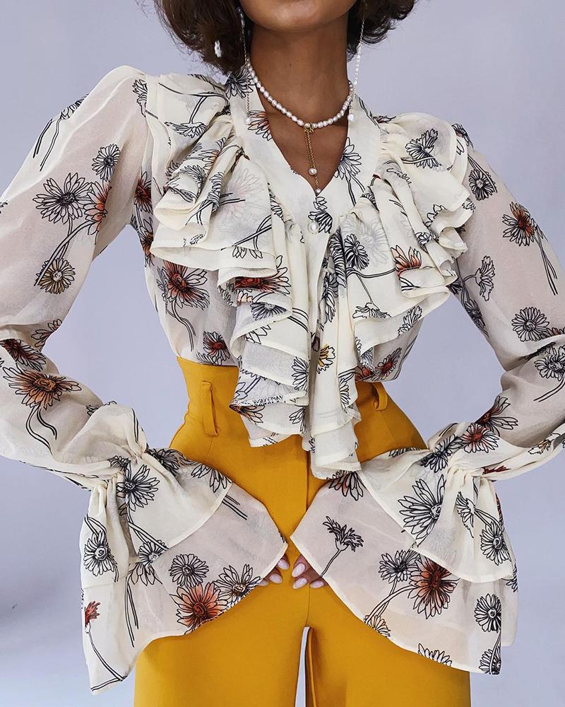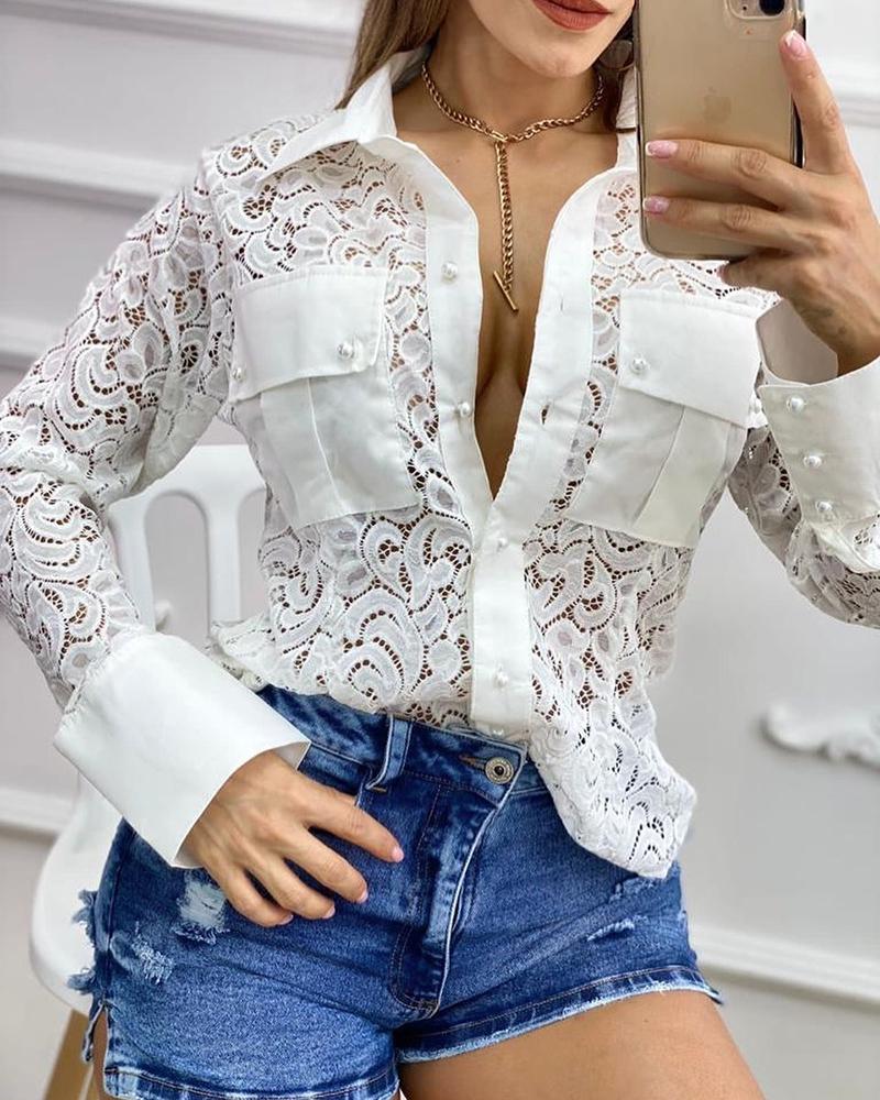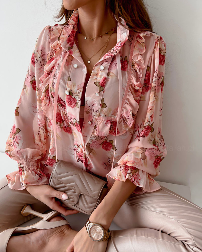 Floral Lace Long Sleeve Ruffles Buttoned Top |