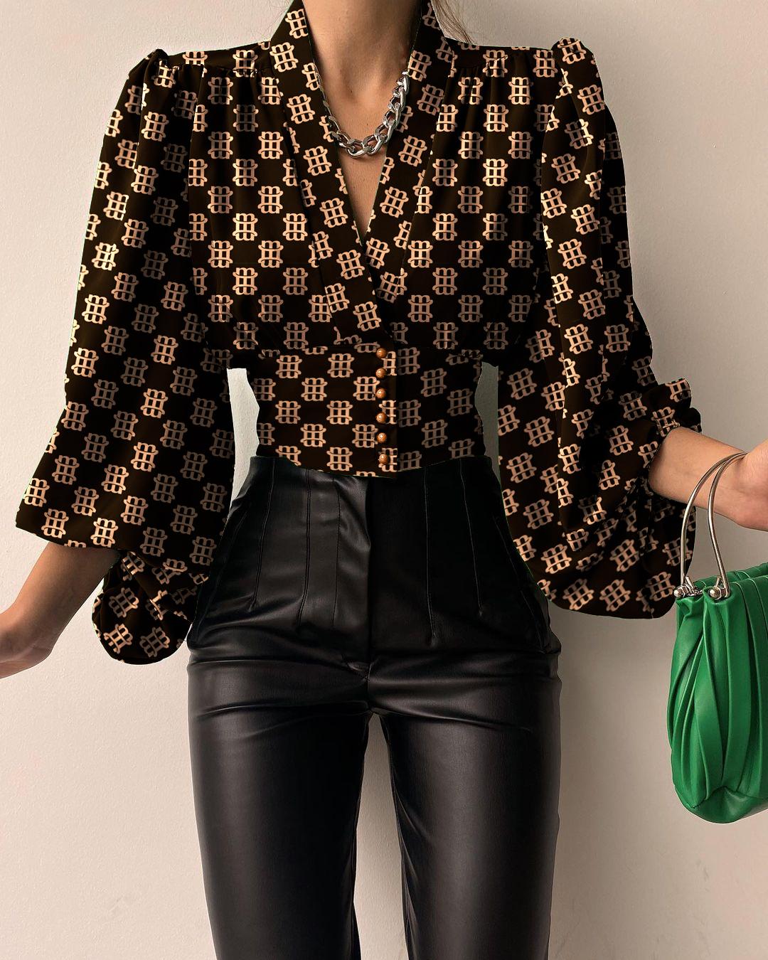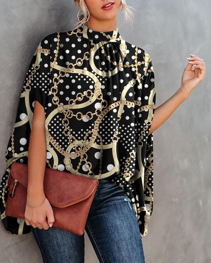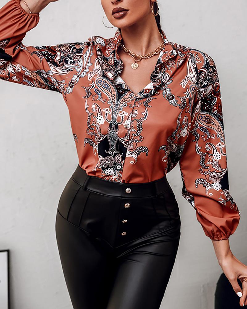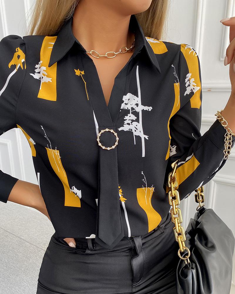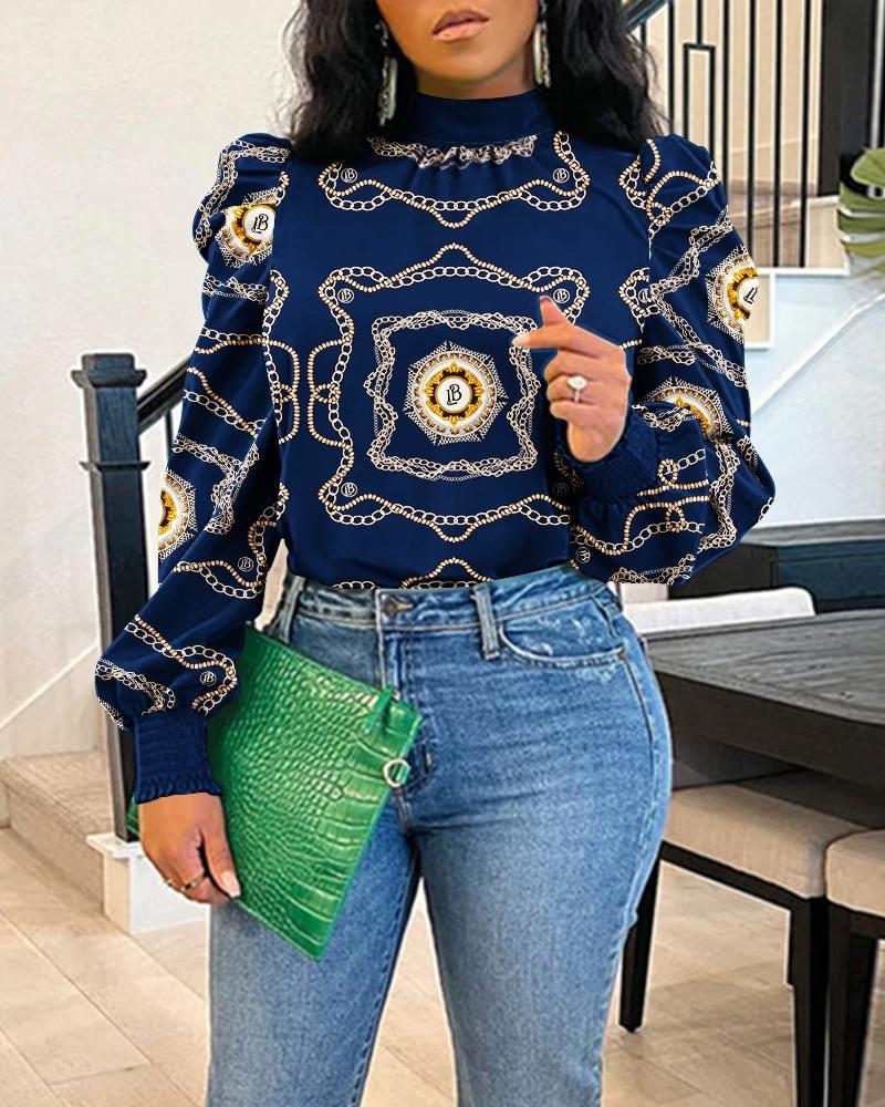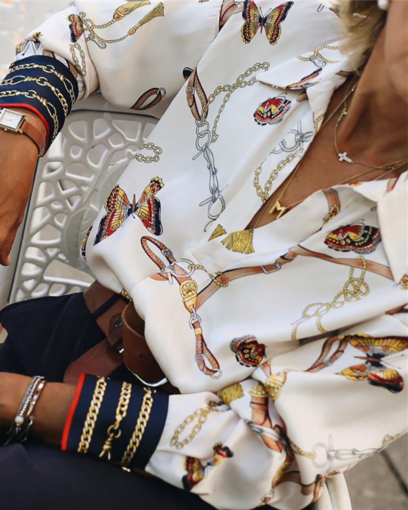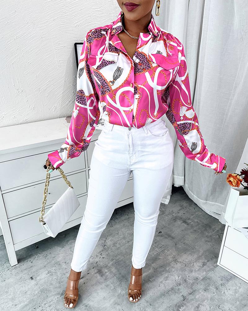 Plus Size Scarf Chain Print Long Sleeve Shirt |