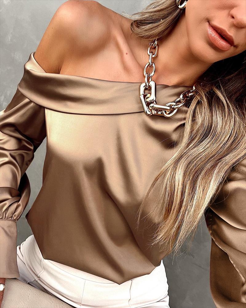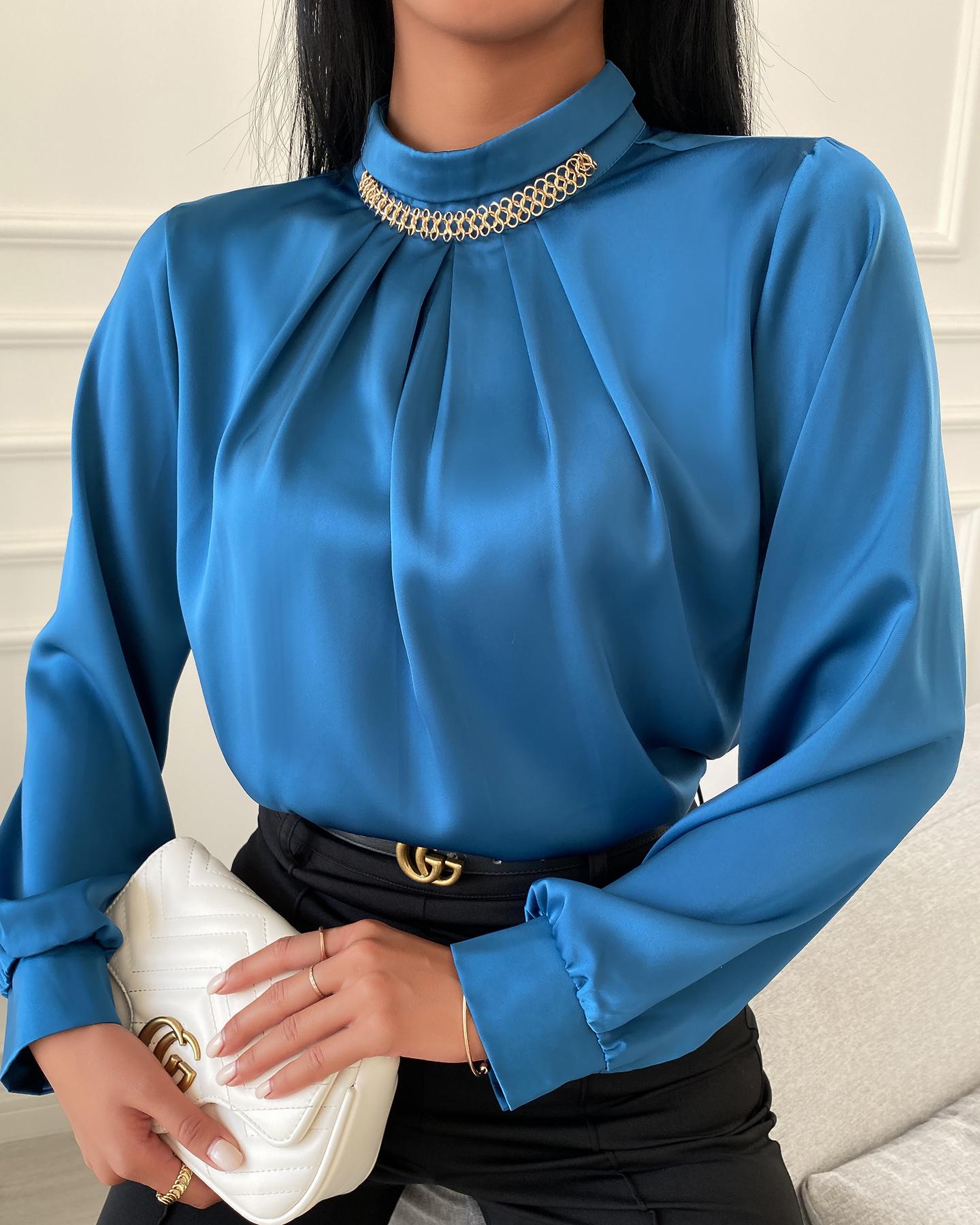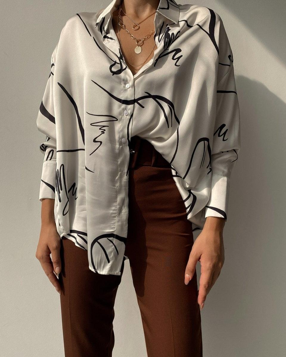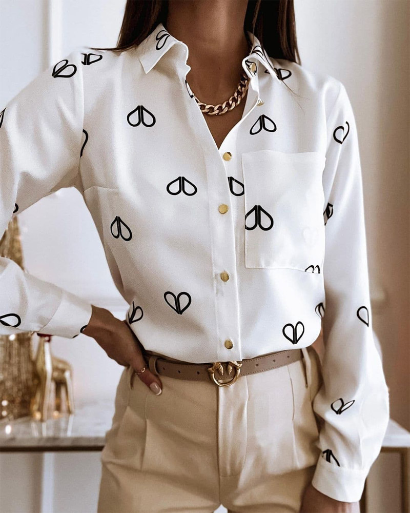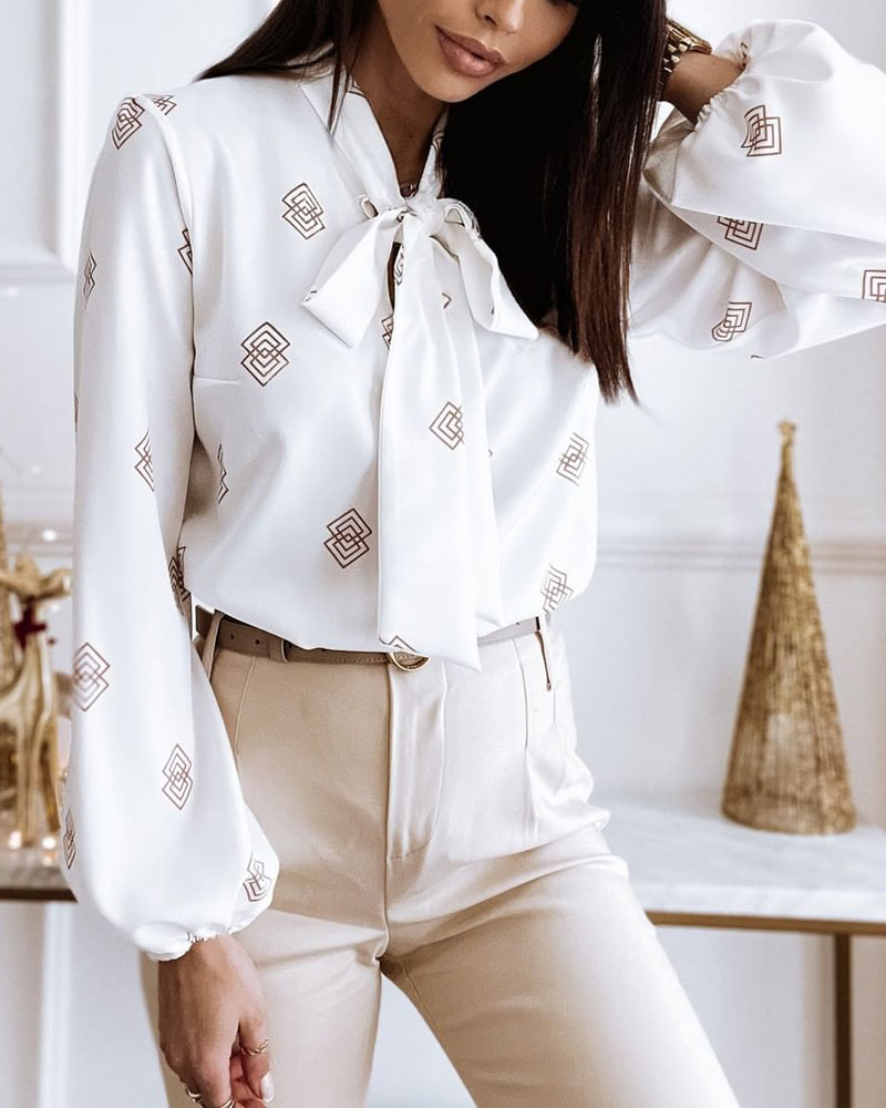 Plus Size Scarf Chain Print Long Sleeve Shirt |
