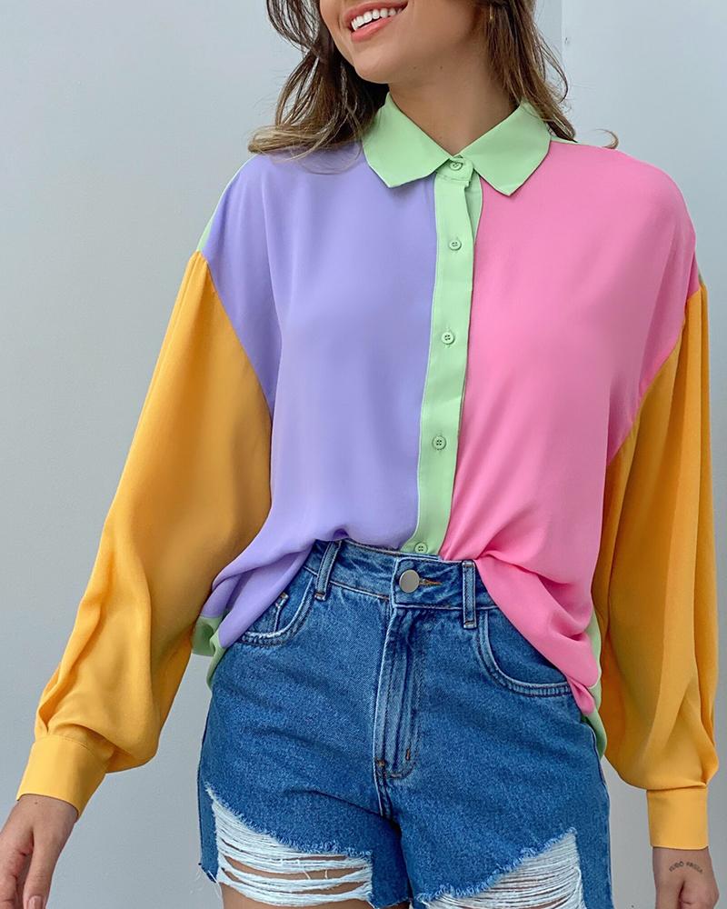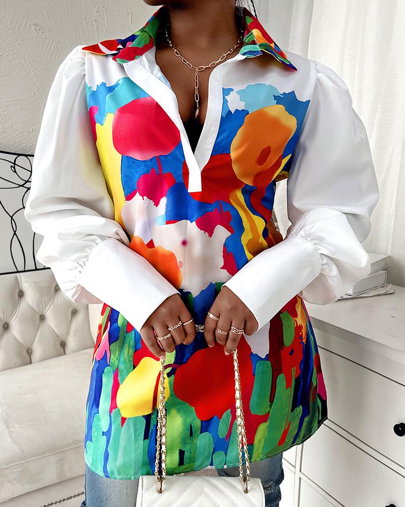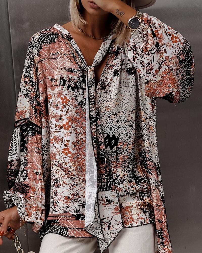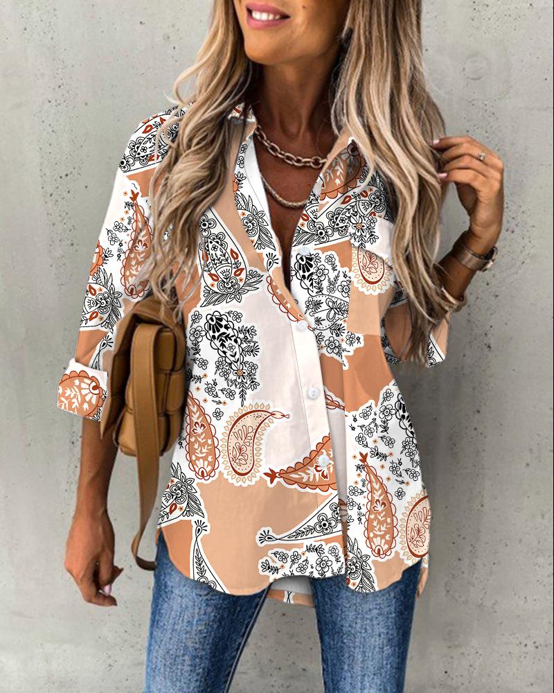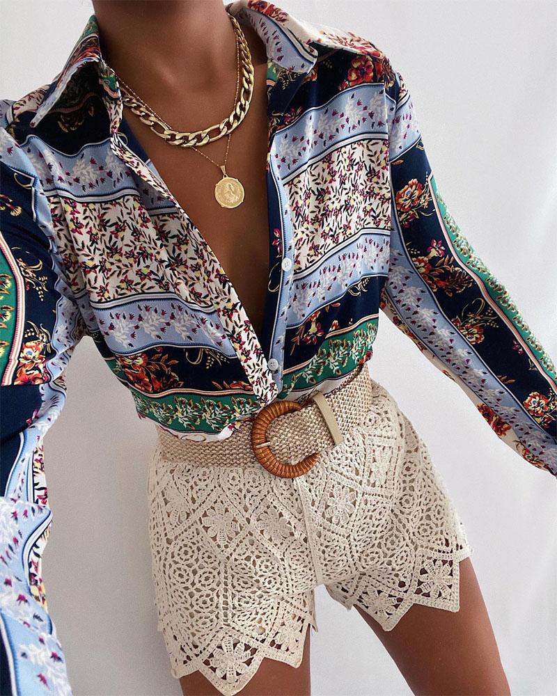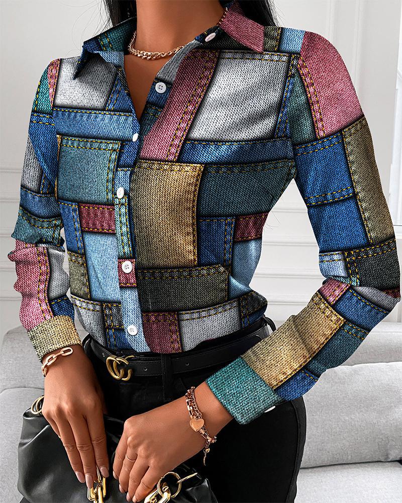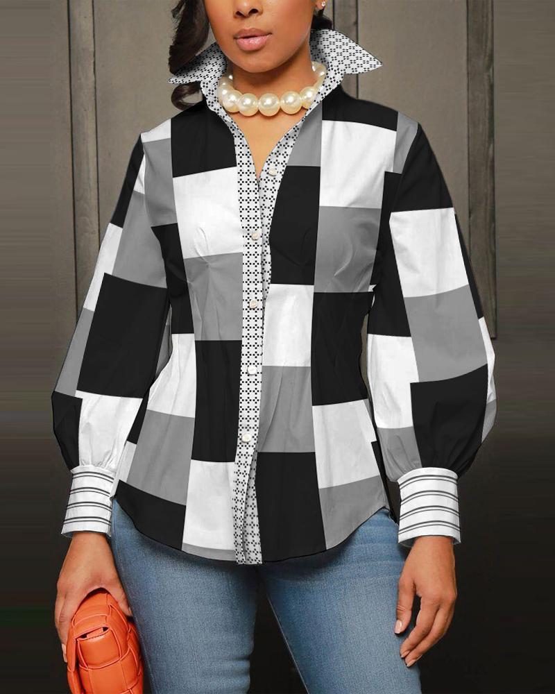 Plus Size Scarf Print Colorblock Buttoned Shirt |