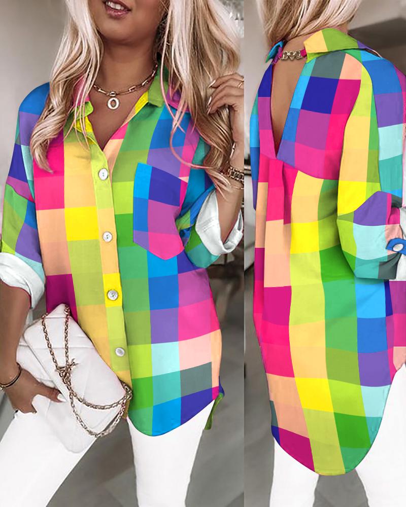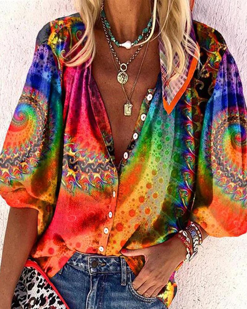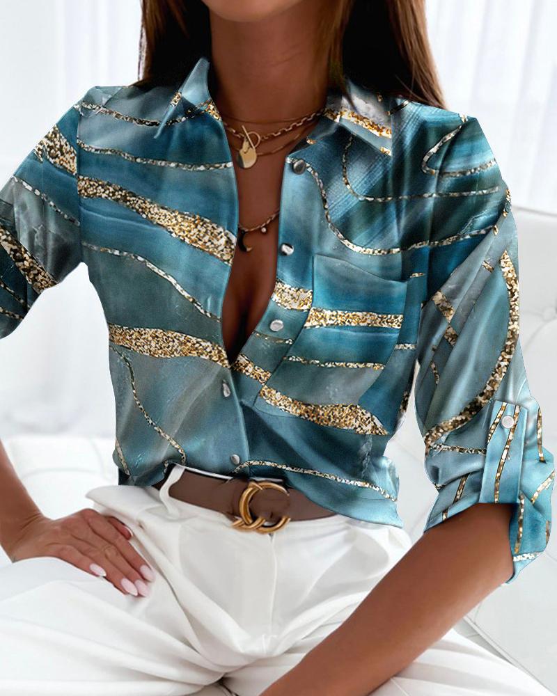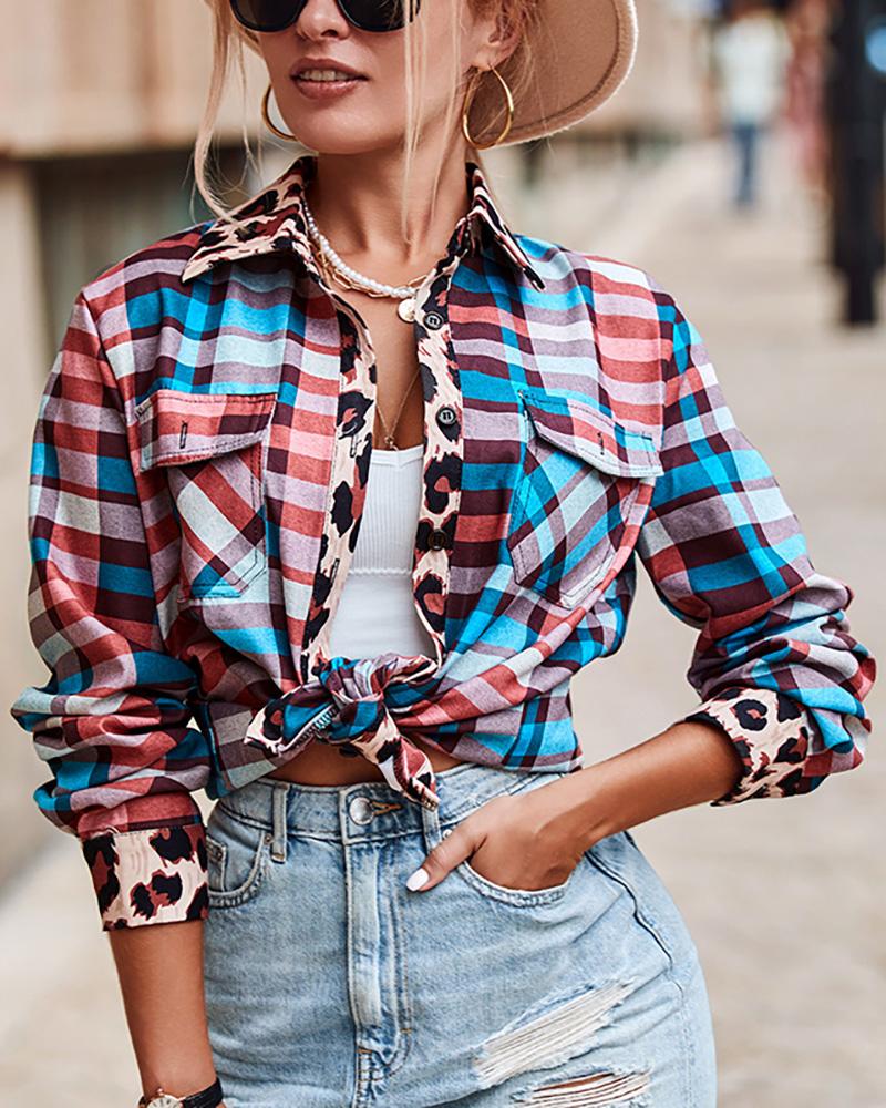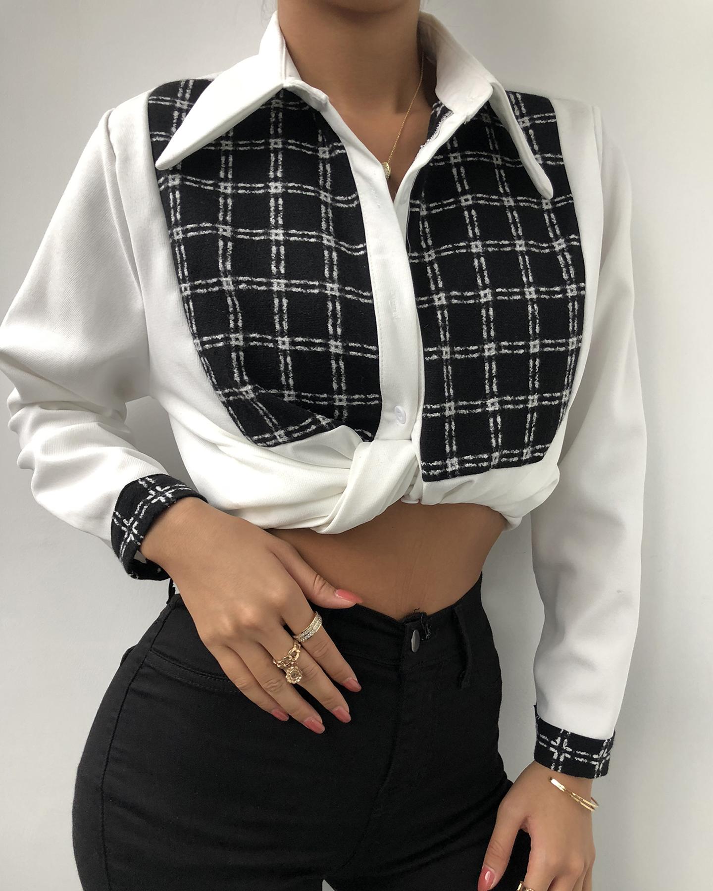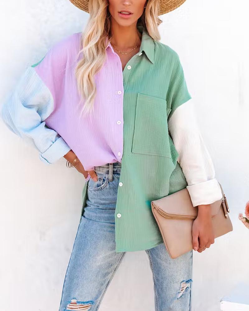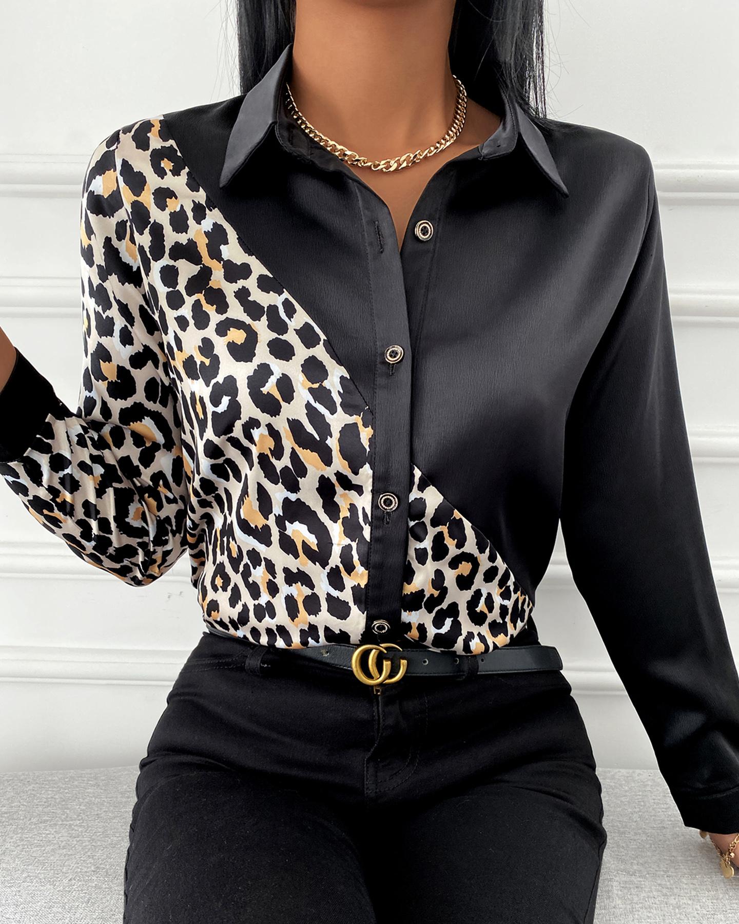 Plus Size Scarf Print Colorblock Buttoned Shirt |
