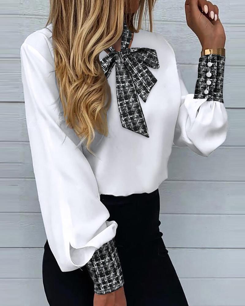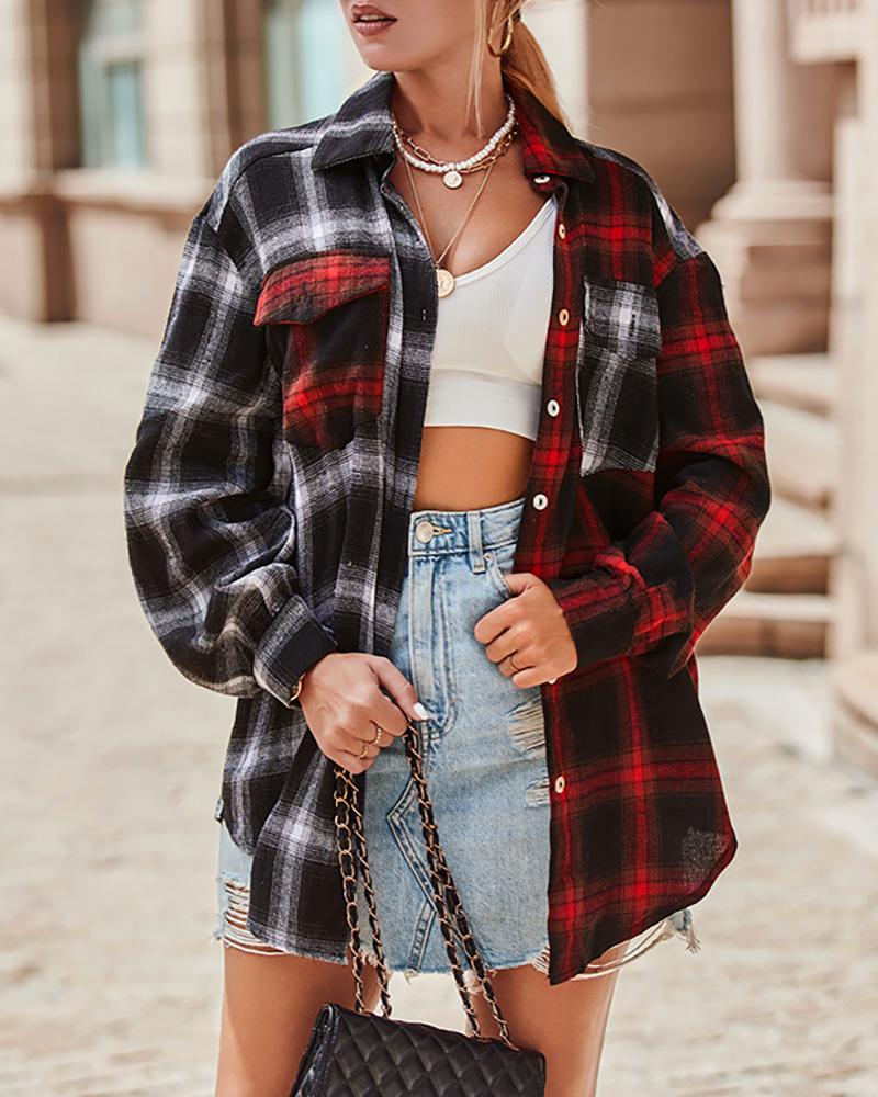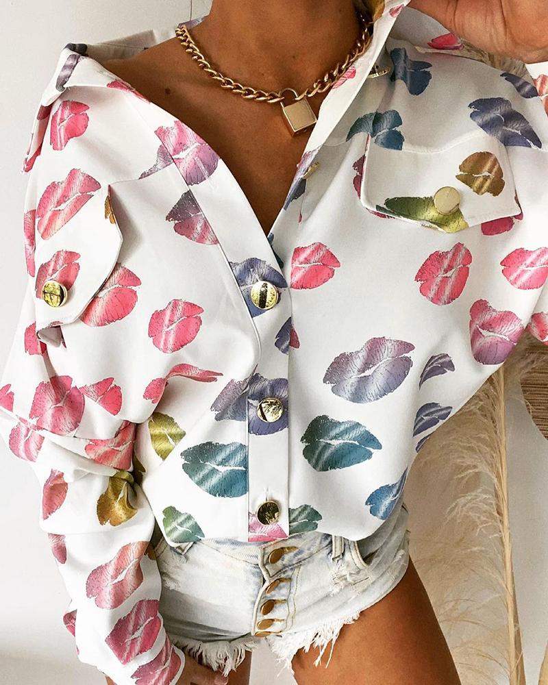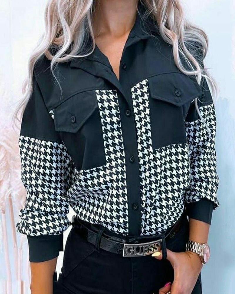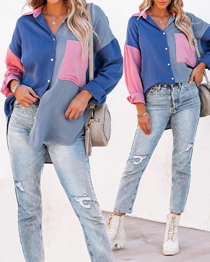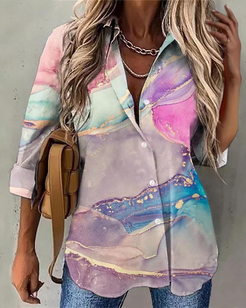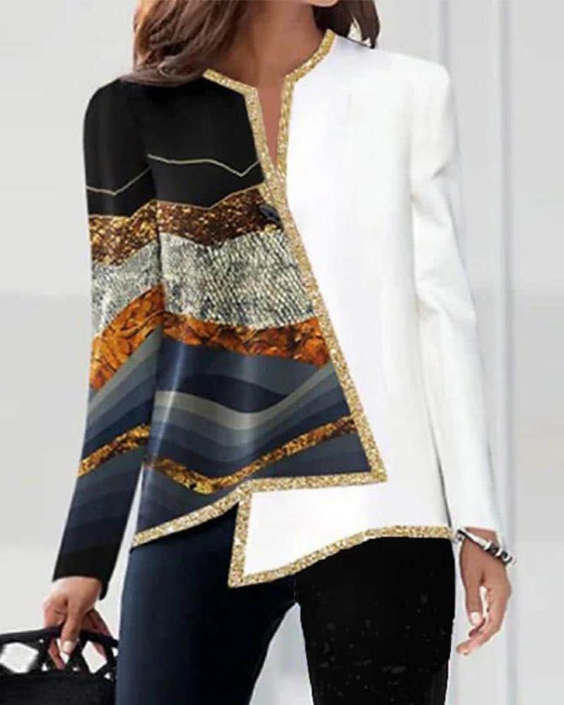 Plus Size Scarf Print Colorblock Buttoned Shirt |