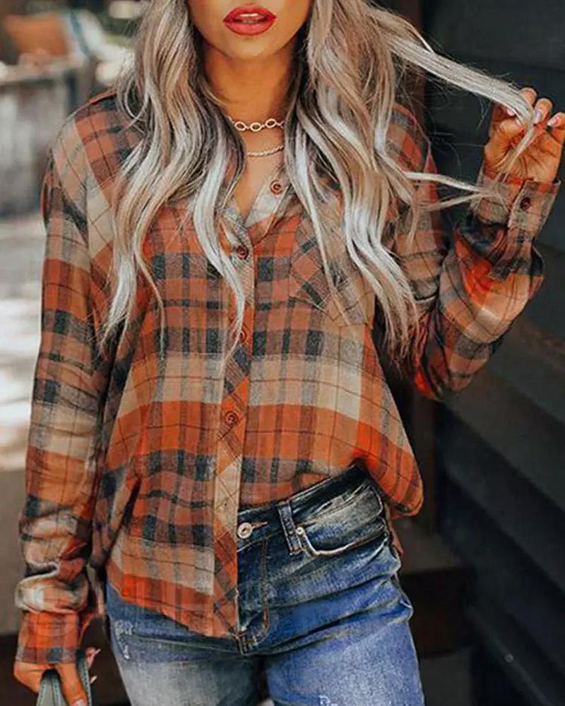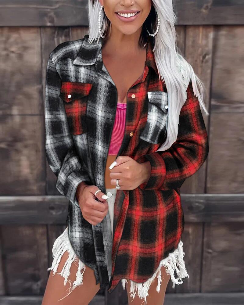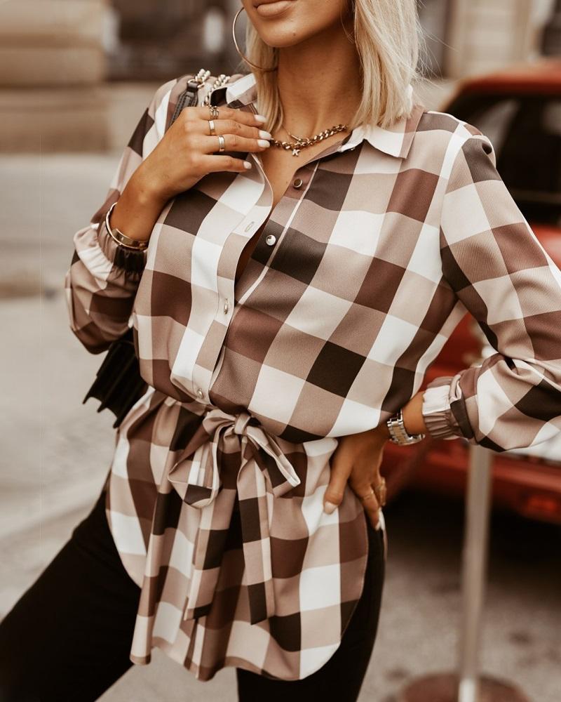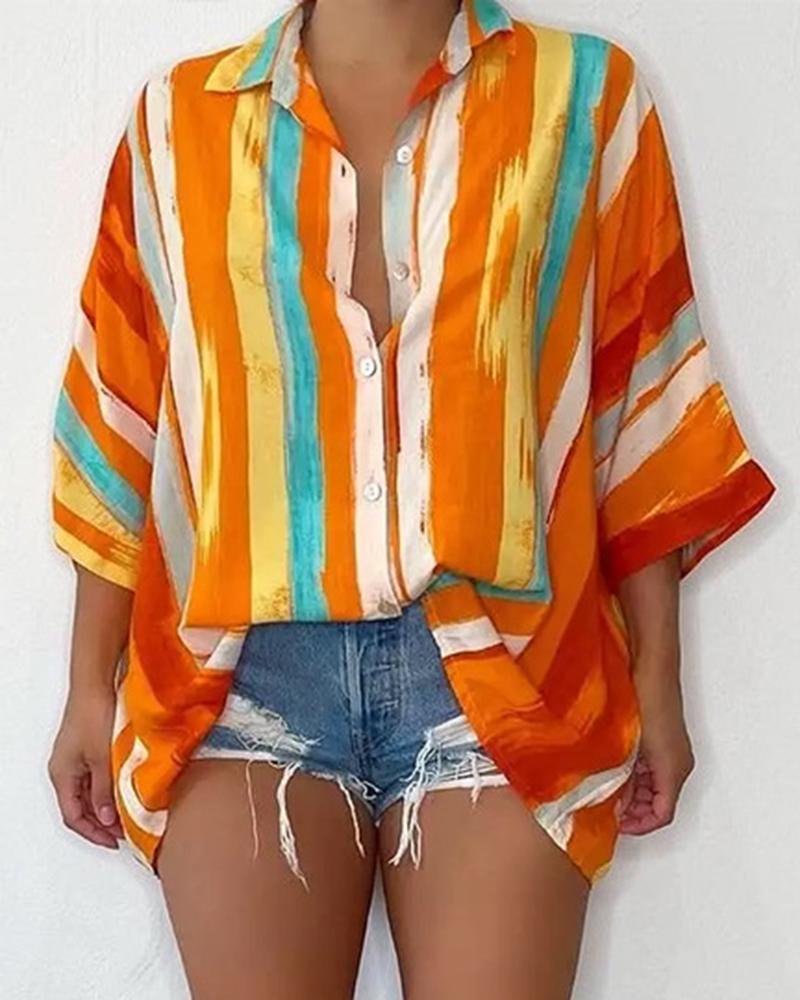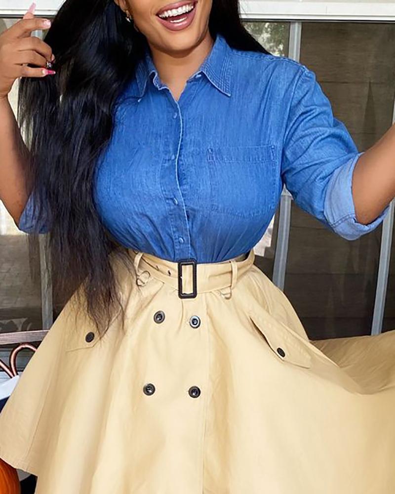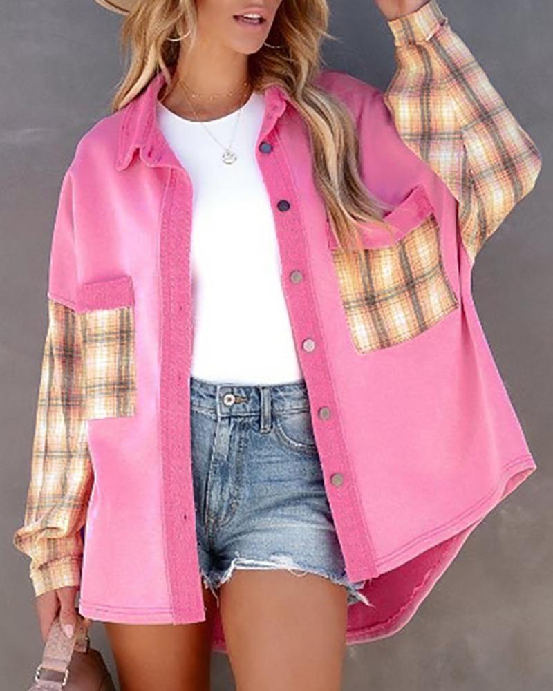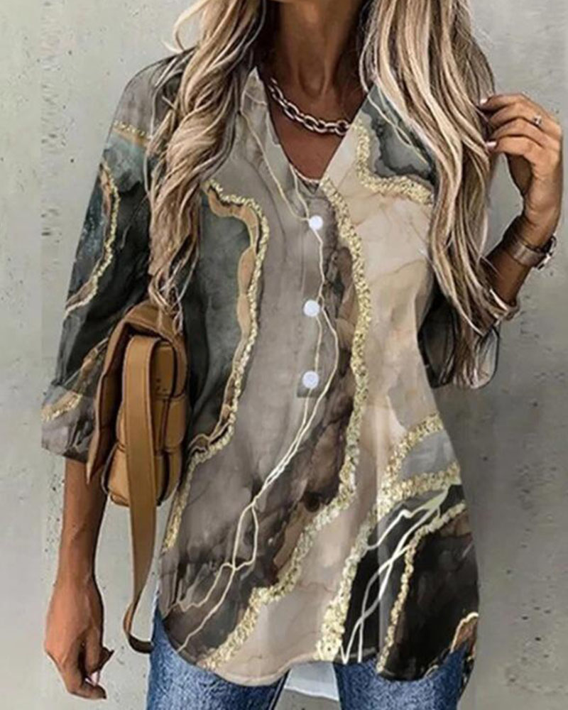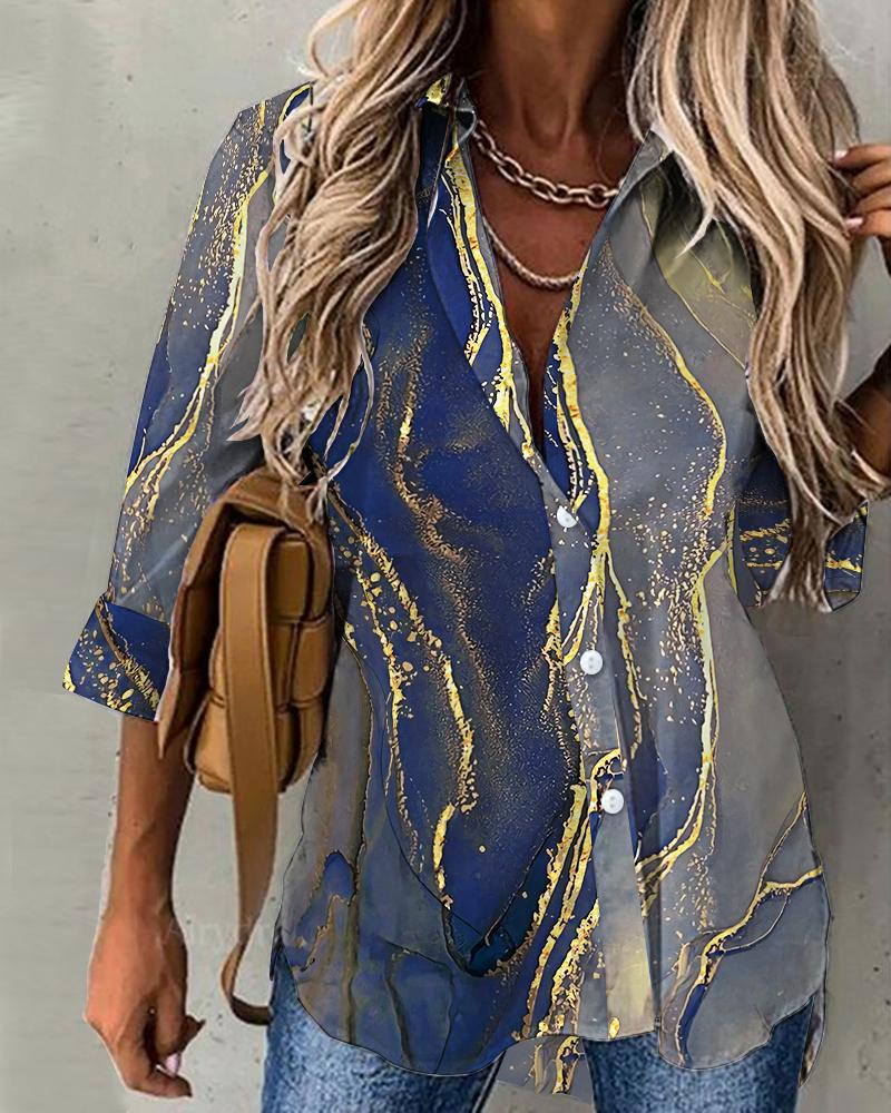 Plus Size Scarf Print Colorblock Buttoned Shirt |