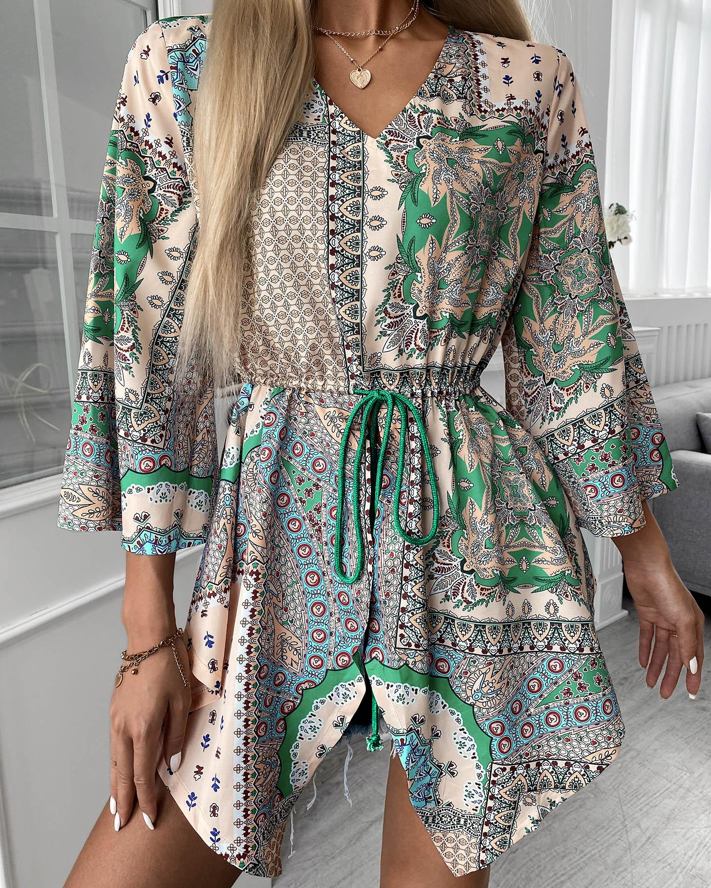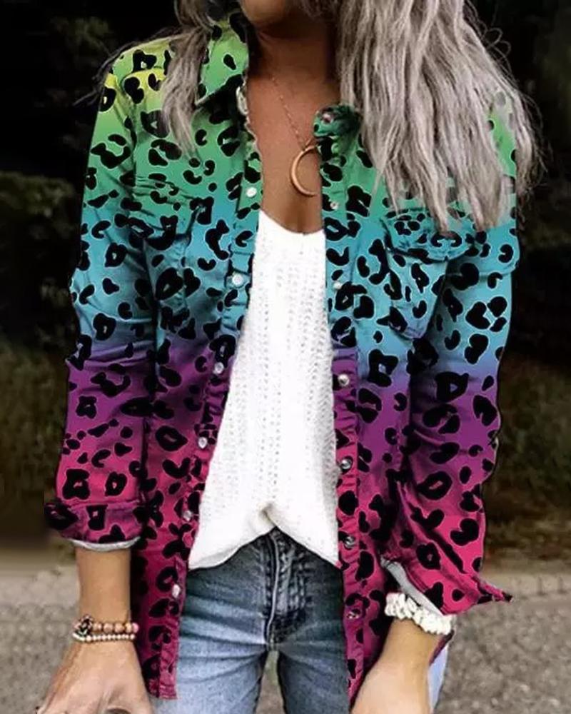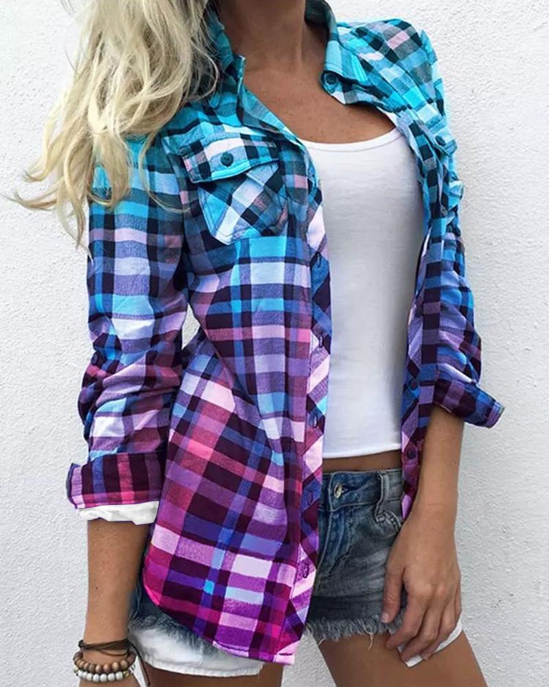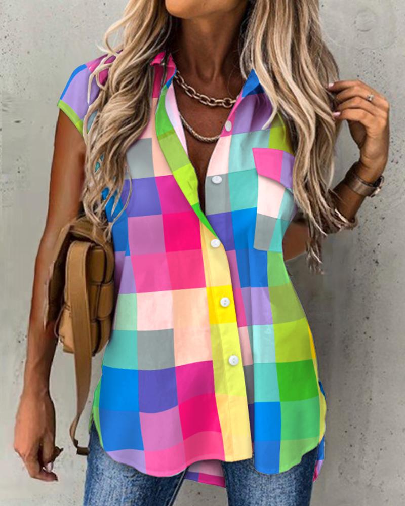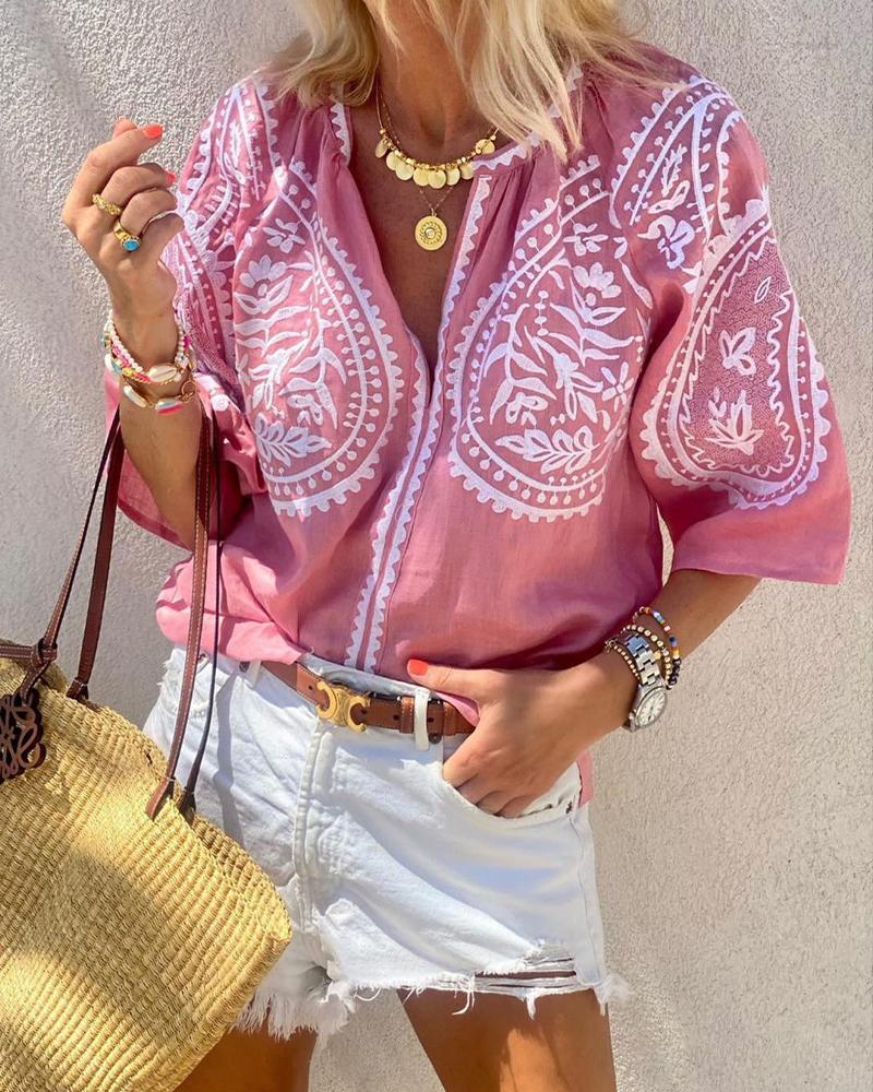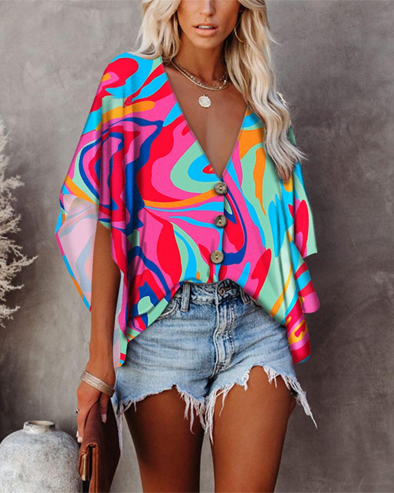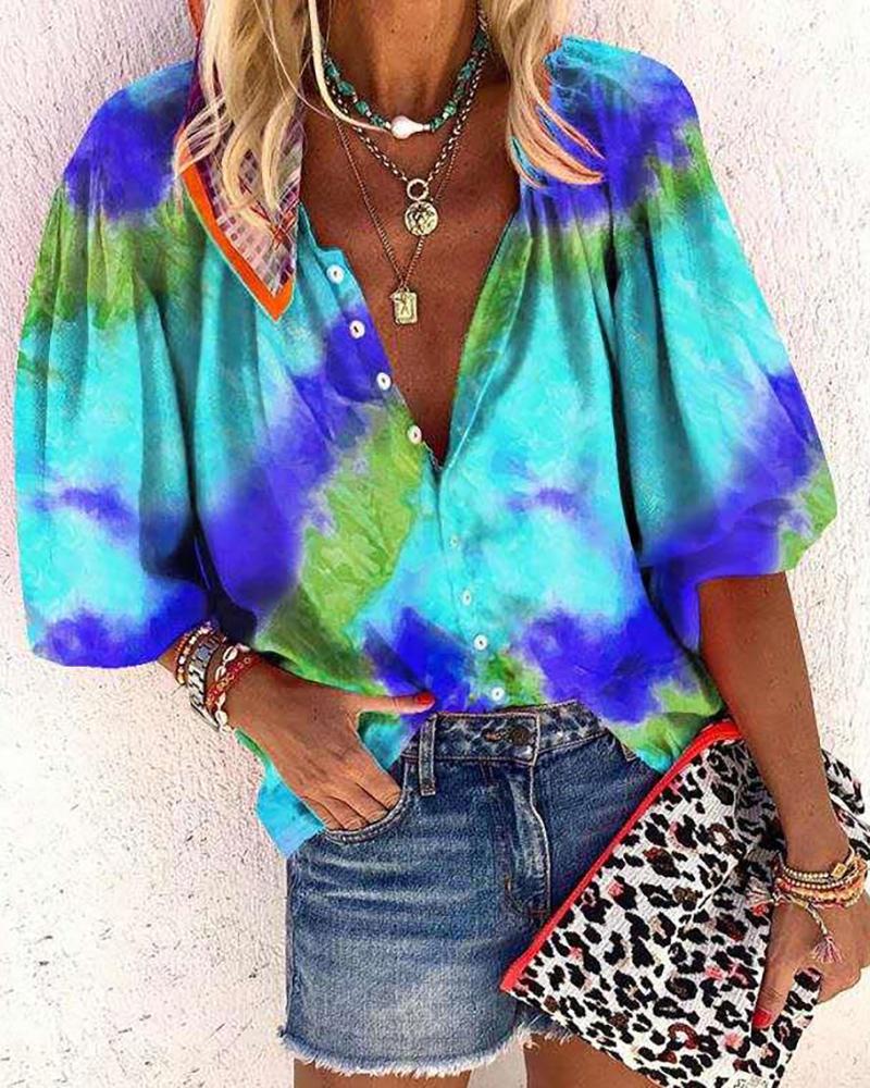 Plus Size Scarf Print Colorblock Buttoned Shirt |