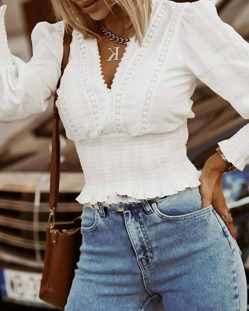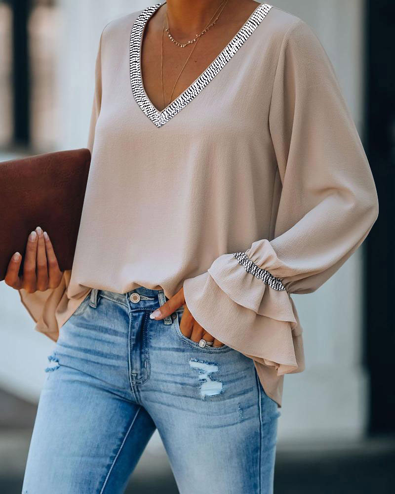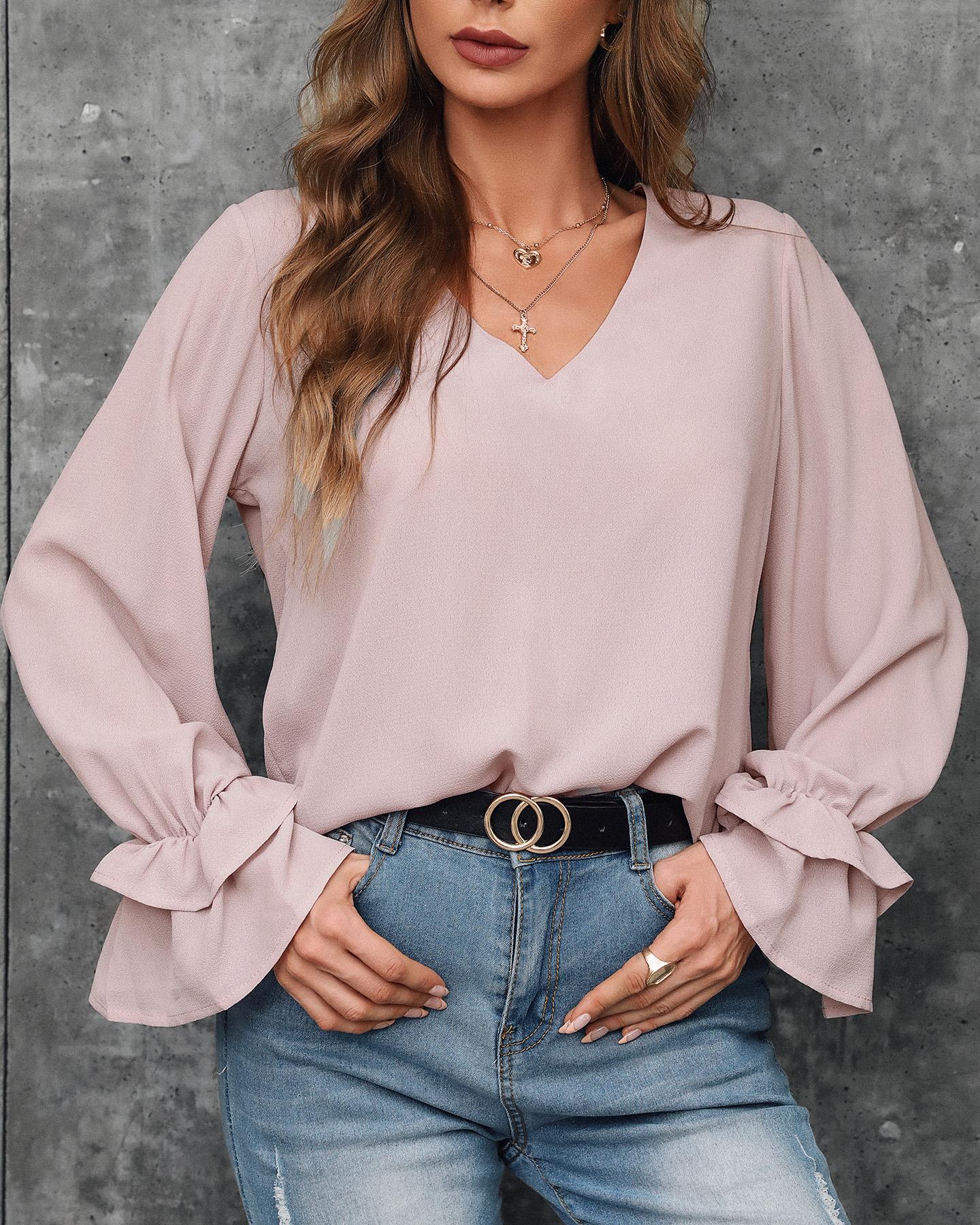 Long Sleeve V-Neck Casual Top |
