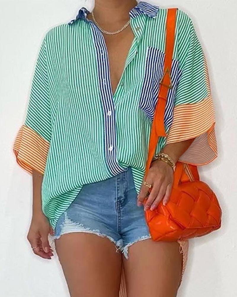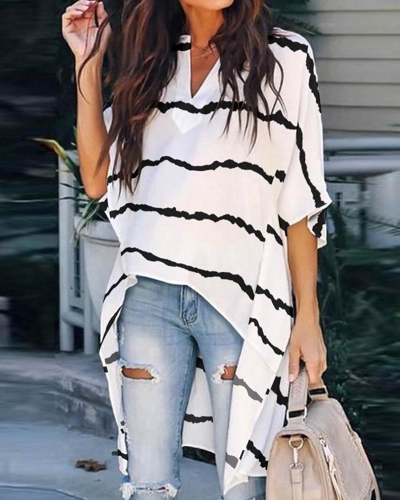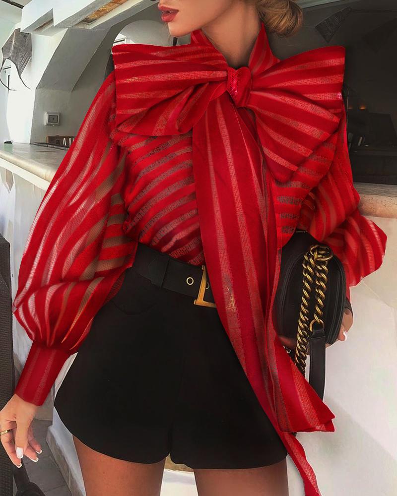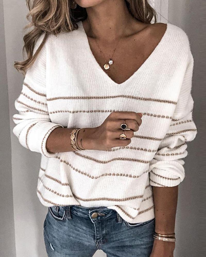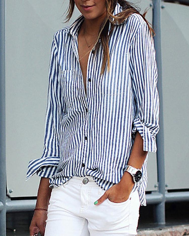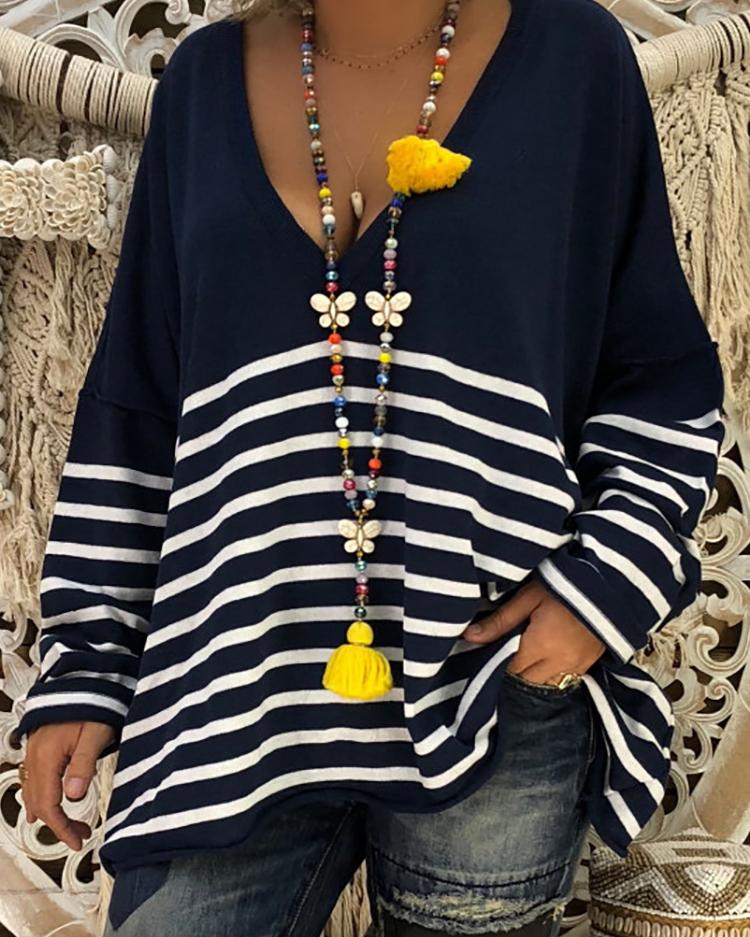 Stripes Deep V Long Sleeve Casual Women Blouse |