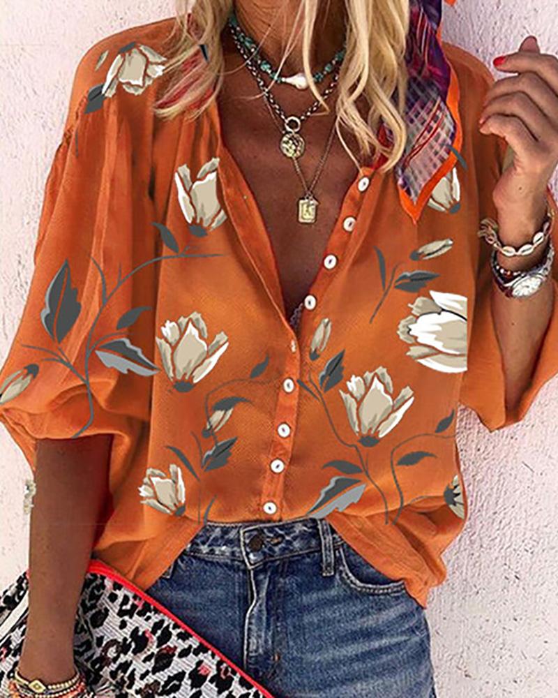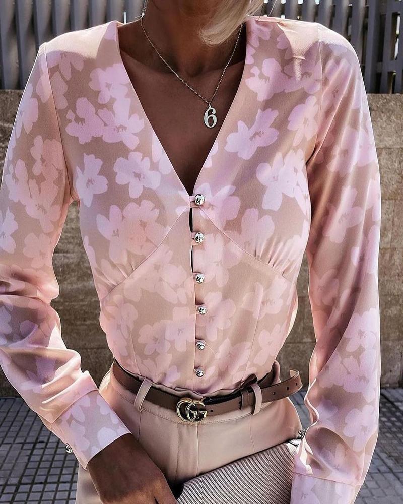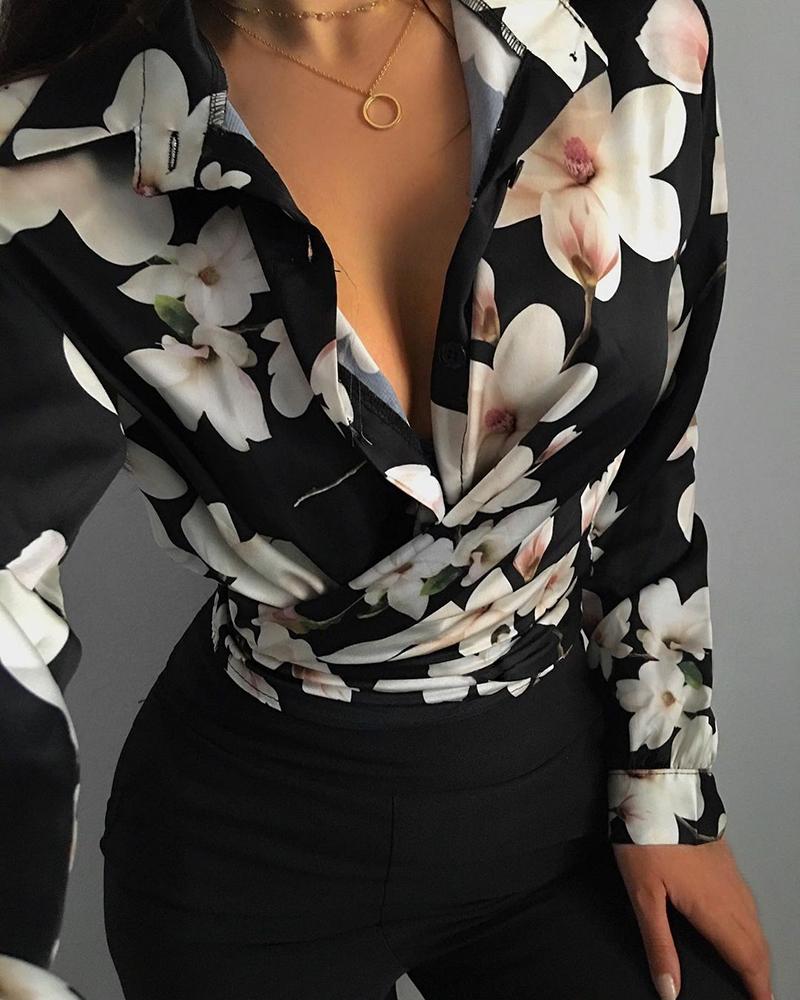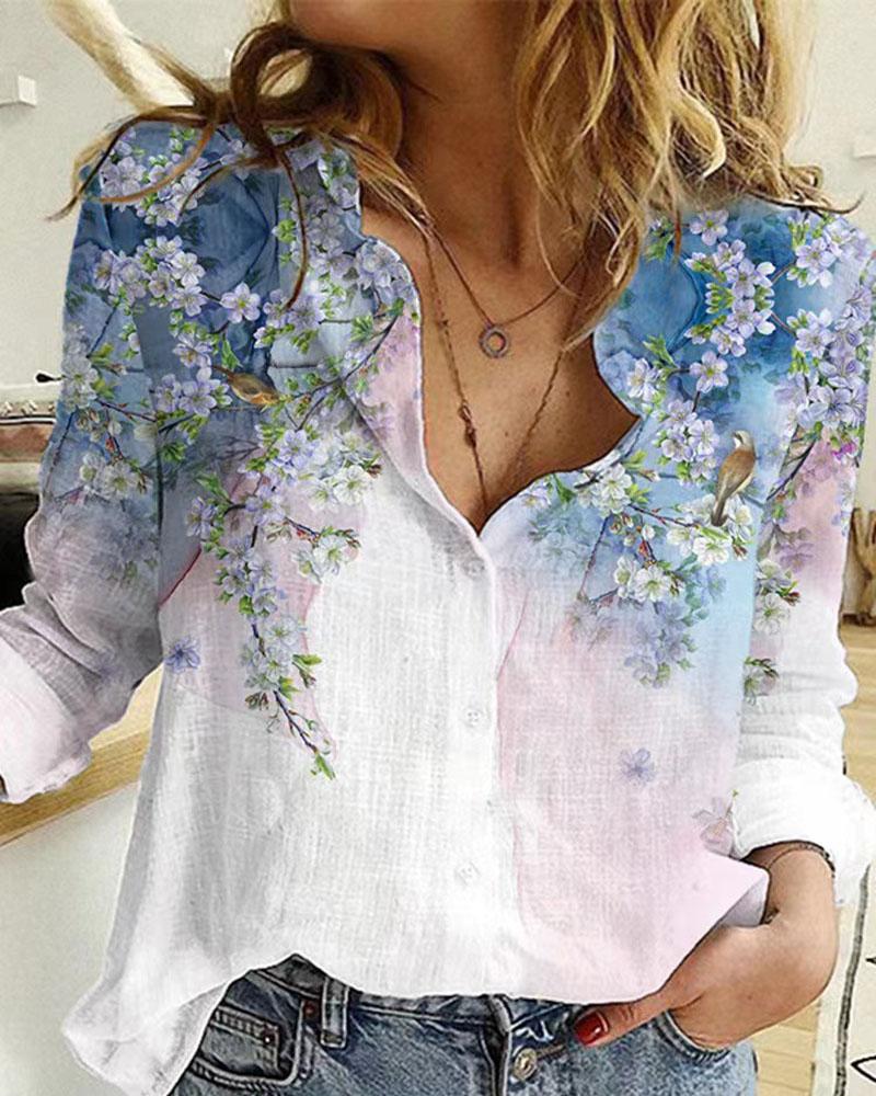 Floral Print Long Sleeve Casual Shirt |