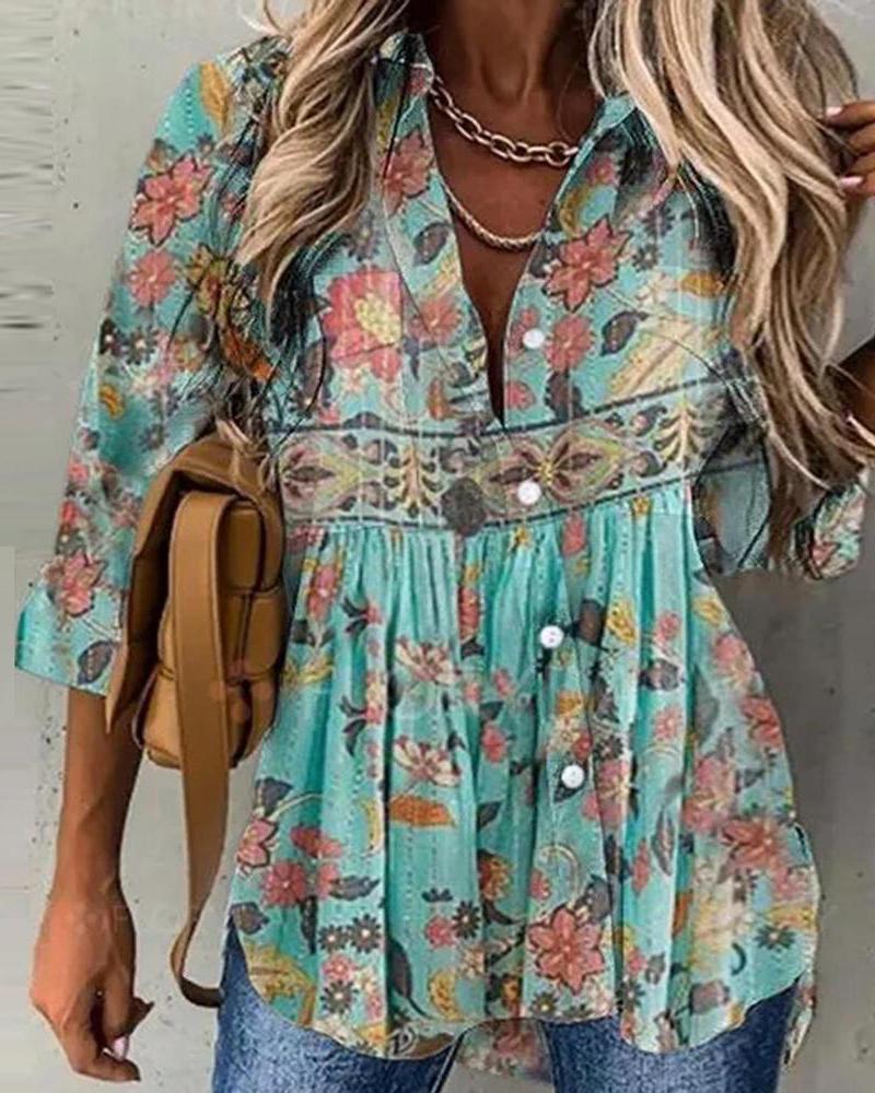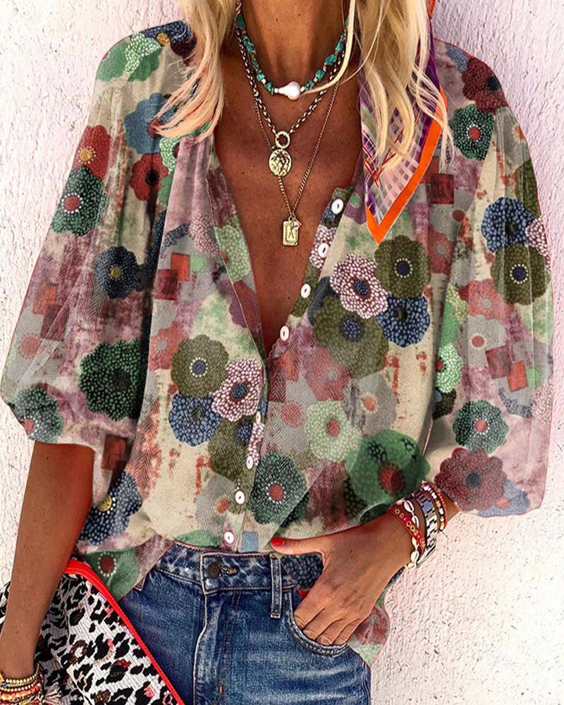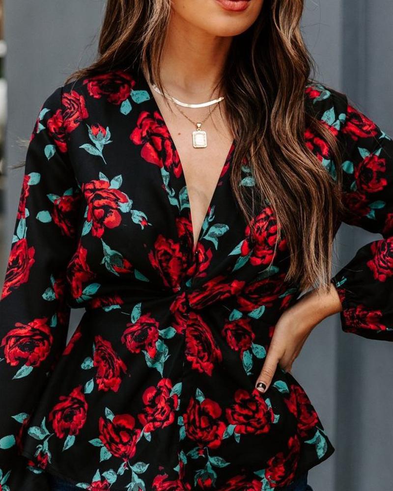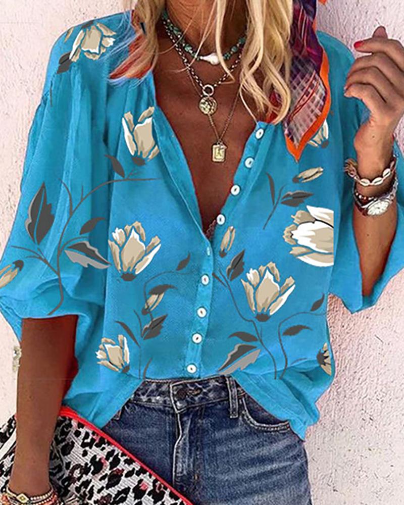 Floral Print Long Sleeve Casual Shirt |